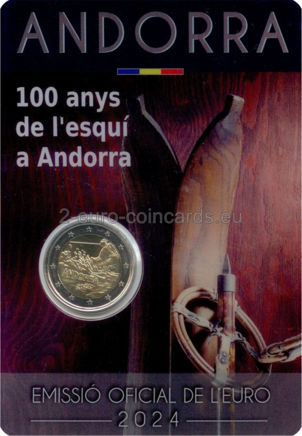 Andorrské kniežatstvo vydáva v roku 2024 pamätnú euromincu pri príležitosti stého výročia lyžovania v krajine. Táto špeciálna emisia poukazuje na historický a kultúrny význam tejto aktivity pre andorrský národ. Okrem toho minca v hodnote dvoch eur odráža snahu Andorry uctiť si a zachovať svoje športové a turistické dedičstvo. Rok vydania 2024 tak predstavuje dôležitý medzník v športovej histórii krajiny. Na začiatku 20. storočia snehové zrážky nerobili obyvateľom Andorry veľkú radosť, lebo veľmi sťažovali spojenie medzi dedinami. V roku 1924 musel Miquel Farré, poštár zo Soldeu, napriek zlému počasiu pokračovať vo svojej obchôdzke. Keď prišiel do dediny Porte, zistil, že jeho francúzski susedia používajú na pohyb v snehu dlhé lišty z jaseňového dreva, ktoré majú k nohám priviazané remienkami. Bez váhania vymenil svoje snežnice za tieto nové klzké pomôcky. Jeho príchod do Soldeu bol senzáciou. Tento prvý pár lyží si rodina Farré dodnes cení. Prvé lyže sa objavili v kniežatstve a spočiatku sa používali ako dopravný prostriedok na uľahčenie zimného cestovania.