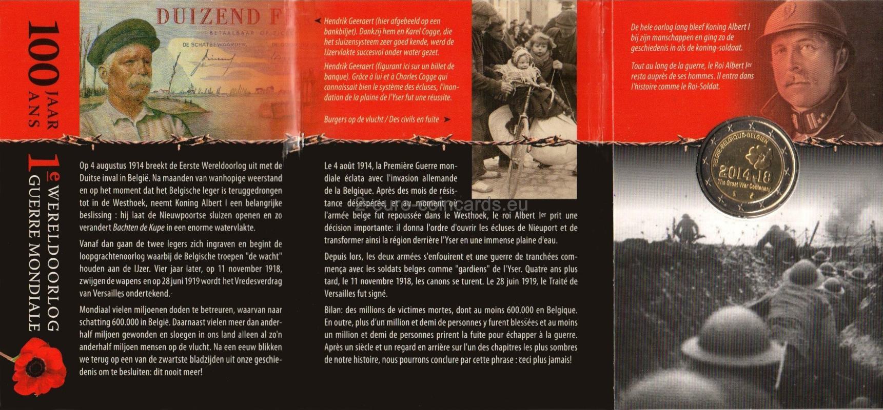 Vo vnútornej časti mince je zobrazený vlčí mak nad letopočtami 2014 – 18. Pod týmito letopočtami je uvedený nápis „The Great War Centenary“ a pod ním sa nachádza značka generálneho riaditeľa mincovne Bernarda Gillarda (mačka) a značka belgickej mincovne (hlava archanjela Michaela s prilbicou). V hornej časti v strede je trojjazyčný nápis BELGIE – BELGIQUE – BELGIEN.