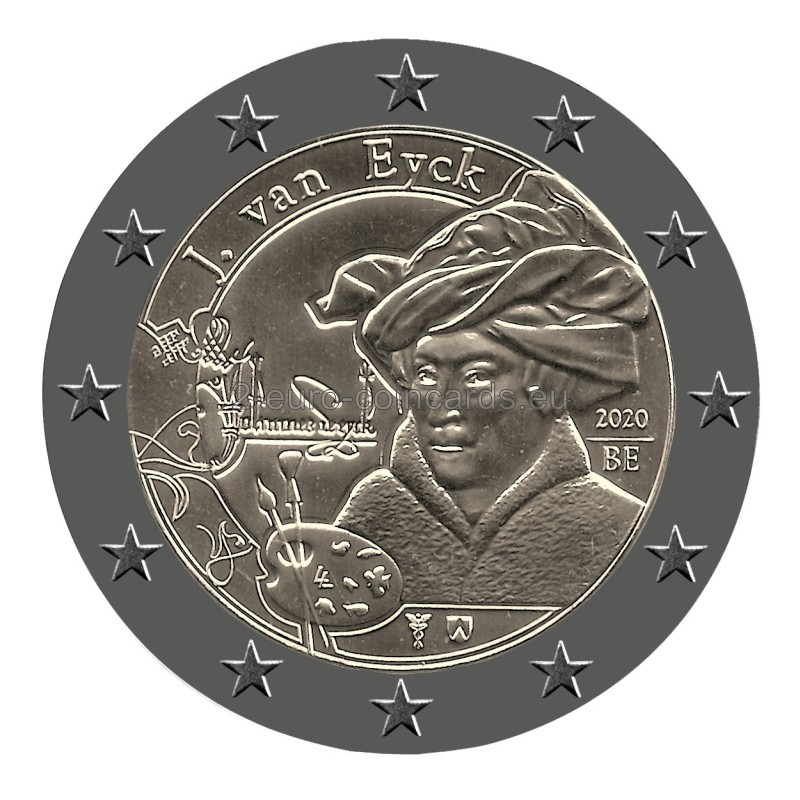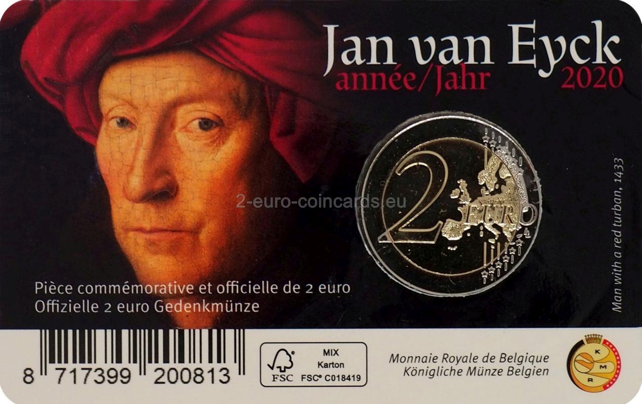 Vnútorný disk obsahuje fragment obrazu „Portrét muža v červenom turbane“. Na ľavej strane je maliarska paleta so štetcami na ktorej sa nachádzajú aj iniciály autora mince Luca Luycx (LL). V hornej časti je vpísané meno J. van Eyck. V dolnej časti sa nachádza značka Kráľovskej holandskej mincovne v Utrechte (Merkúrova palica), ako aj značka riaditeľky belgickej mincovne Ingrid van Herzele (erb mesta Herzele). V pravej časti je umiestnený kód krajiny BE a letopočet 2020.
