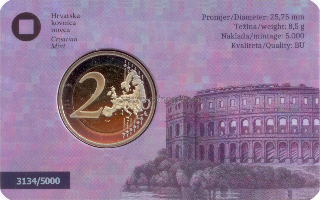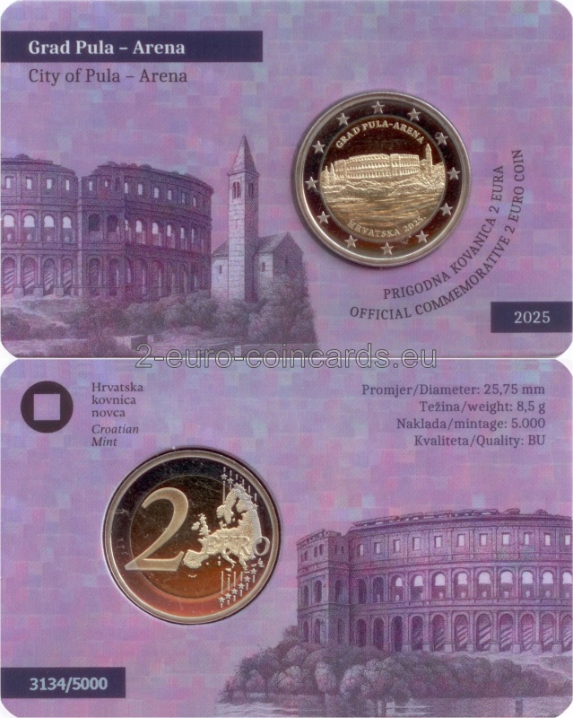 Zadná strana mince v strede zobrazuje amfiteáter v Pule (Arena), jednu z najvýznamnejších starobylých pamiatok v Chorvátskej republike, z pohľadu od Jadranského mora ktoré je zobrazené pod hlavným motívom, aby sa zdôraznil výrazný stredomorský charakter Chorvátska. Na pravej strane amfiteátra je obraz kostola svätého Antona postaveného v 30. rokoch minulého storočia, ktorý je súčasťou panoramatického výhľadu na mesto Pula. V dolnej časti je názov vydávajúcej krajiny „HRVATSKA“ (Chorvátsko), rok vydania „2025“ a v hornej časti slová „GRAD PULA-ARENA“ (mesto Pula – amfiteáter).
