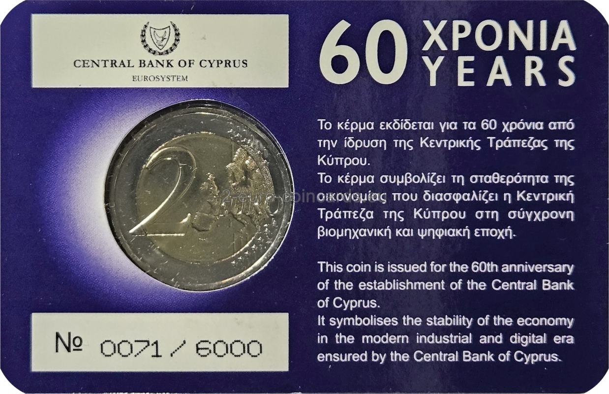 Táto minca je vydaná pri príležitosti 60. výročia založenia Central Bank of Cyprus. Symbolizuje stabilitu hospodárstva v modernej priemyselnej a digitálnej ére, ktorú zabezpečuje Central Bank of Cyprus.