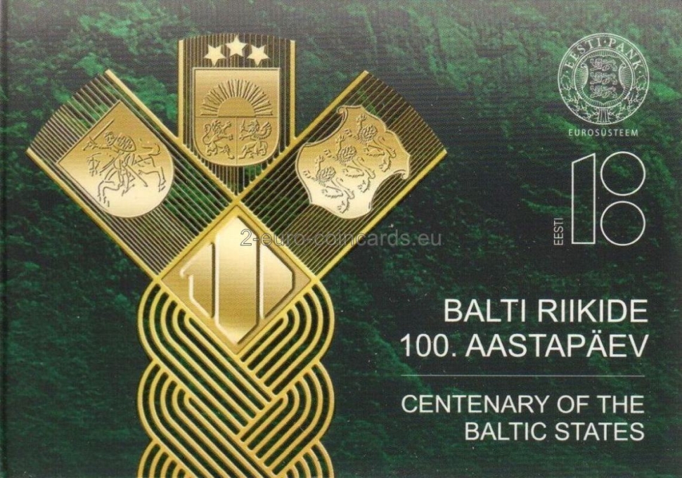 Pri príležitosti 100. výročia nezávislosti pobaltských štátov sa centrálne banky týchto krajín dohodli na vydaní spoločnej pamätnej mince v hodnote 2 EUR s jednotným dizajnom. Jediným rozdielom je názov vydávajúcej krajiny. Tri pobaltské štáty sú symbolicky znázornené vo forme vrkoča. Spája ich história: spoločná minulosť, súčasnosť a budúcnosť. Súčasťou motívu je aj štylizovaná číslica predstavujúca 100. výročie a heraldické symboly všetkých troch štátov. Na ľavej strane sa nachádza názov vydávajúcej krajiny „EESTI“ a na pravej strane rok vydania „2018“. Tento návrh bol vybraný na základe verejného hlasovania vo všetkých troch pobaltských krajinách.