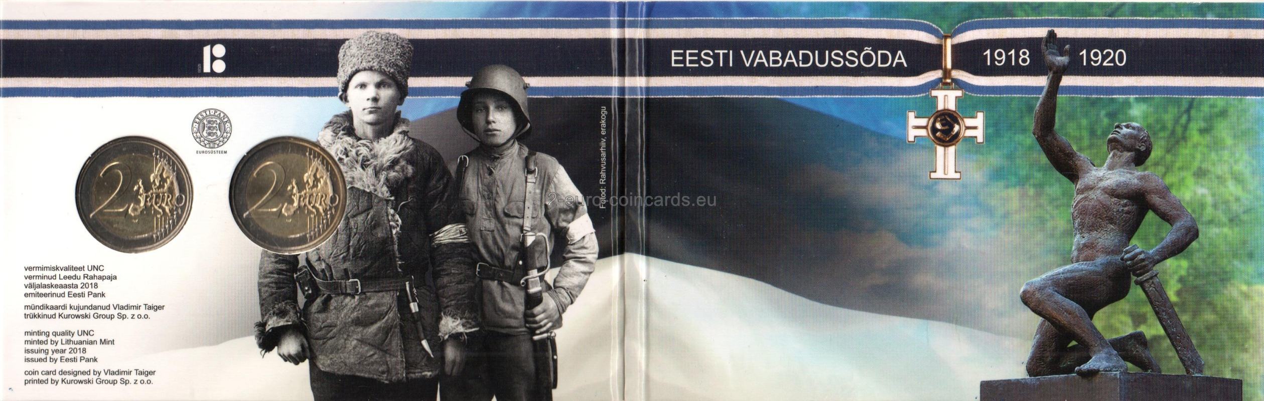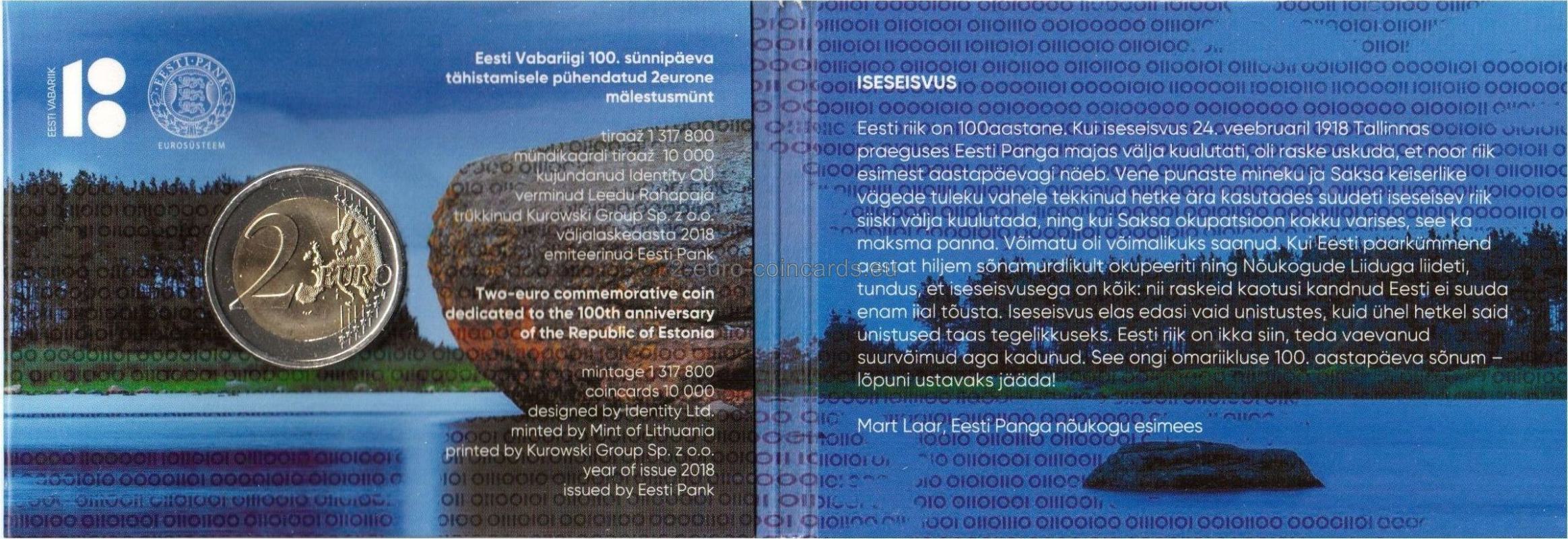 Vzor súčasne zobrazuje čísla 18 a 100, ktoré symbolizujú čas, kedy Estónsko získalo nezávislosť a zároveň vyjadrujú ostatných sto rokov. V pravo dole je v polkruhu uvedený text „SADA AASTAT EESTI VABARIIKI“, za ním názov krajiny „EESTI“ a rok vydania „2018“.