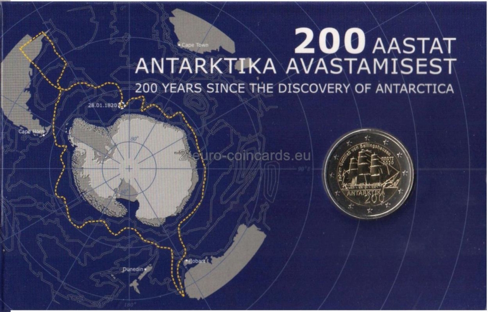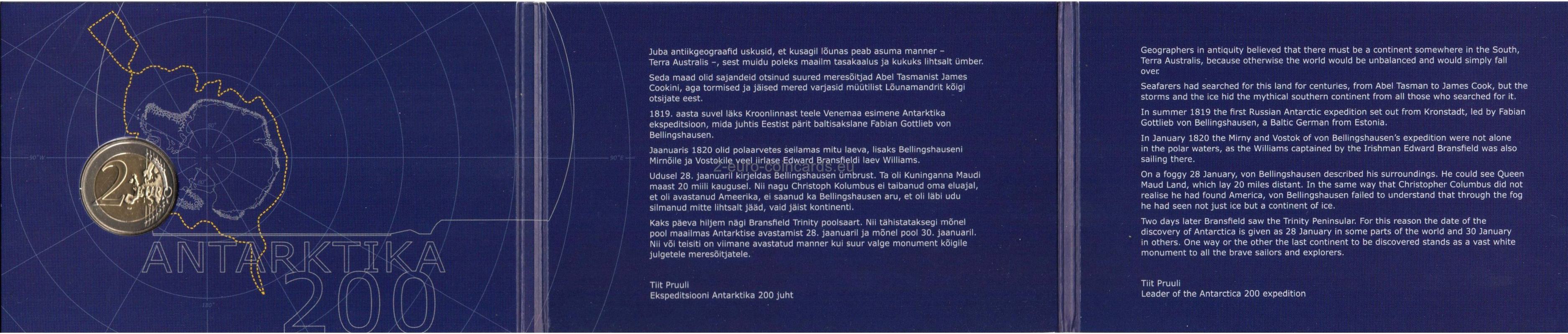 Na vzore je vyobrazený motív plávajúcej plachetnice, napravo od nej je štylizovaný ľad. Sú tam aj nápisy „Fabian Gottlieb von Bellingshausen“ a „ANTARKTIKA 200“, názov krajiny „EESTI“ a rok vydania „2020“.