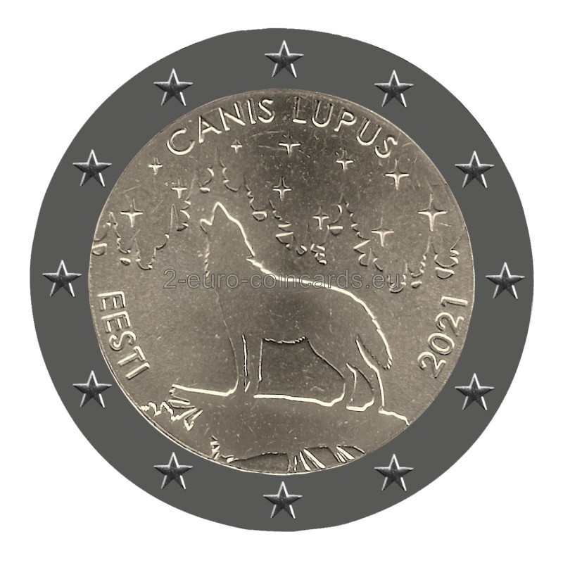 Na vzore je znázornená silueta vlka a lesa. Pri okraji vnútorného prstenca mince sa vľavo nachádza názov krajiny „EESTI“, vpravo rok vydania „2021“ a hore slová „CANIS LUPUS“ (latinské pomenovanie vlka).