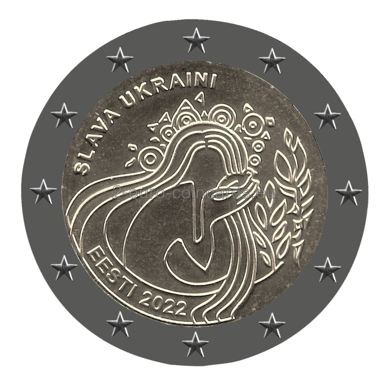 V máji 2022 oznámila estónska centrálna banka neplánovanú emisiu pamätnej mince v hodnote 2 EUR na podporu Ukrajiny. Schválenie a výroba pamätnej mince v hodnote 2 eur trvá spravidla približne 1,5 roka. Ale s touto mincou išlo všetko oveľa rýchlejšie. Prípravy na vydanie mince začala estónska banka už v apríli 2022. Dôležitú úlohu pri navrhovaní mincí zohrala Estónska akadémia umenia, kde mohli na jar pokračovať v štúdiu ukrajinskí študenti umenia, ktorí kvôli vojne utiekli z Ukrajiny. V apríli akadémia zorganizovala súťaž v navrhu mincí medzi ukrajinskými študentmi, v ktorej zvíťazila Darya Titova z Charkova. Dozorná rada estónskej centrálnej banky schválila návrh mince začiatkom mája. Kartu mince navrhol Vladimír Taiger, ktorý bol zároveň konzultantom pri návrhu mince. Potom musela návrh mince schváliť Európska komisia a členské štáty EÚ. Estónska centrálna banka zároveň uskutočnila prípravy na emisiu mincí. Mince boli vyrazené v slovenskej mincovni v Kremnici a mincové karty boli vytlačené v Poľsku.