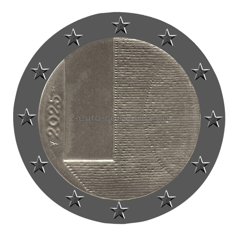 Vo vonkajšom prstenci mince je vyobrazených dvanásť hviezd vlajky Európskej únie ktoré symbolizujú dokonalosť, celistvosť a ideál jednoty a pripomína aj počet mesiacov a ciferník.