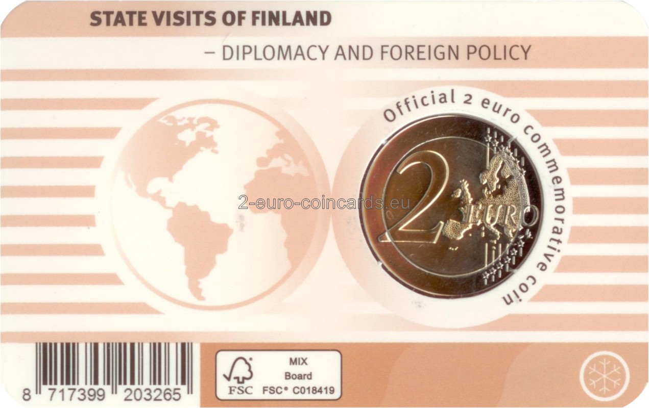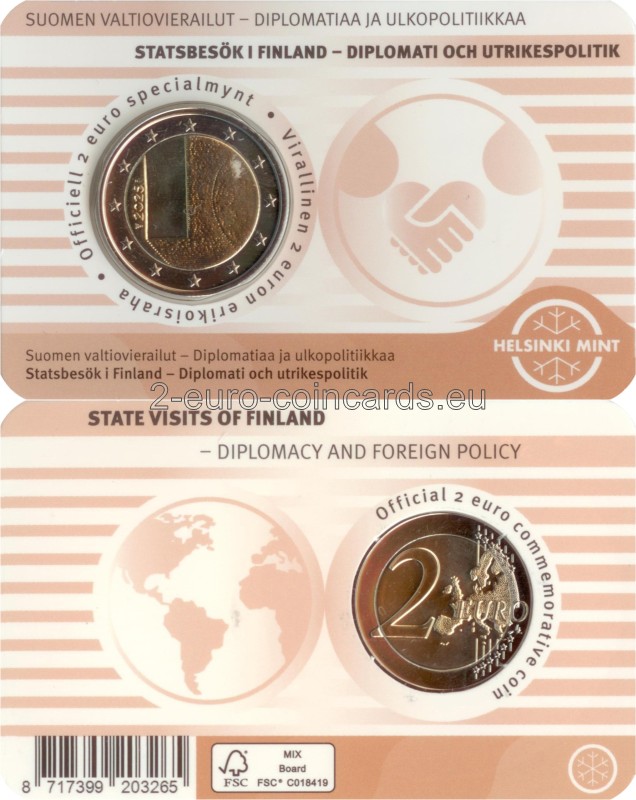 Motív mince navrhli Sinikka Inkeroinen-Huhta a Ilkka Huhta a predstavuje dvere ktoré sú symbolom štátnych návštev a diplomatických vzťahov medzi národmi. Za dverami prebiehajú rokovania, vytvárajú sa vzťahy a buduje sa budúcnosť. Na averze je zobrazená lesklá verzia dverí s hrubým okolím. Ďalej je na nej uvedený rok vydania, 2025.