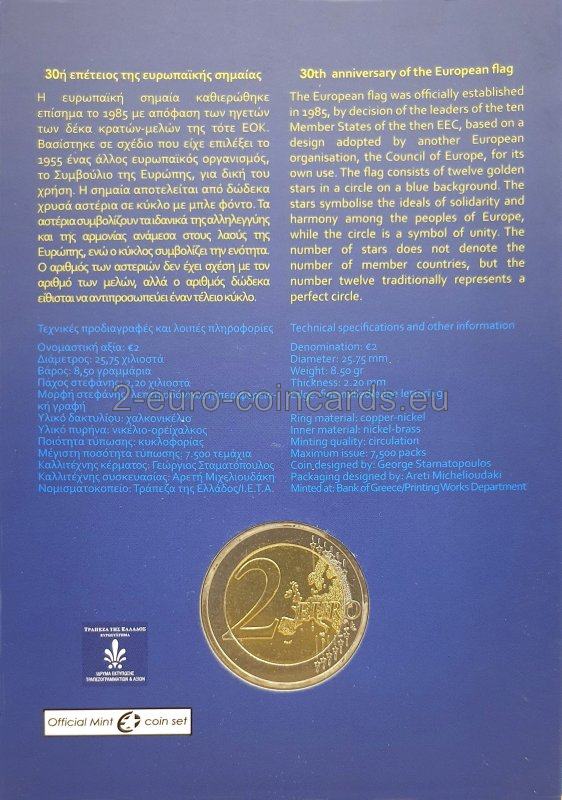 Štvrtá jednotná numizmatická séria je venovaná Európskej vlajke ktorá symbolizuje Európsku úniu a v širšom zmysle aj identitu a jednotu Európy. Má obdĺžnikový tvar s pomerom 2:3. Na modrom pozadí je 12 zlatých päťcípych hviezdičiek, ktoré sa podobajú číslam na ciferníku hodín. Počet hviezd nemá nič spoločné s počtom členských krajín, kruh je symbolom jednoty. Číslo 12 je tradične symbolom dokonalosti, úplnosti a jednoty. Ich počet zostáva rovnaký bez ohľadu na rozšírenie EÚ. Rada Európy podporila myšlienku, že vlajka, ktorú prijala, reprezentuje Európu ako celok, a preto vyzvala ostatné európske organizácie, aby prijali túto vlajku za svoj vlastný symbol. V roku 1983, keď sa v Miláne stretli hlavy štátov a vlád Európskych spoločenstiev, Európsky parlament uznal vlajku Rady Európy za symbol Európskych spoločenstiev. S formálnym súhlasom Rady Európy bola európska vlajka prvýkrát vztýčená 29. mája 1986 pred sídlom Európskej komisie za zvukov európskej hymny. So vznikom Európskej únie sa táto vlajka stala aj jej vlajkou. Na oslavu tridsiateho výročia vlajky EÚ ministri financií eurozóny rozhodli, že členské štáty eurozóny by mali vydať pamätné mince v hodnote 2 EUR s použitím spoločného motívu na národnej strane. Víťazný návrh vybrali občania a obyvatelia eurozóny vo verejnom internetovom hlasovaní. Mali na výber z piatich návrhov, ktoré boli vopred vybrané odbornou porotou na základe súťaže návrhov európskych mincovní, a vybrali motív, ktorý vytvoril pán Georgios Stamatopoulos, profesionálny návrhár banky Bank of Greece.