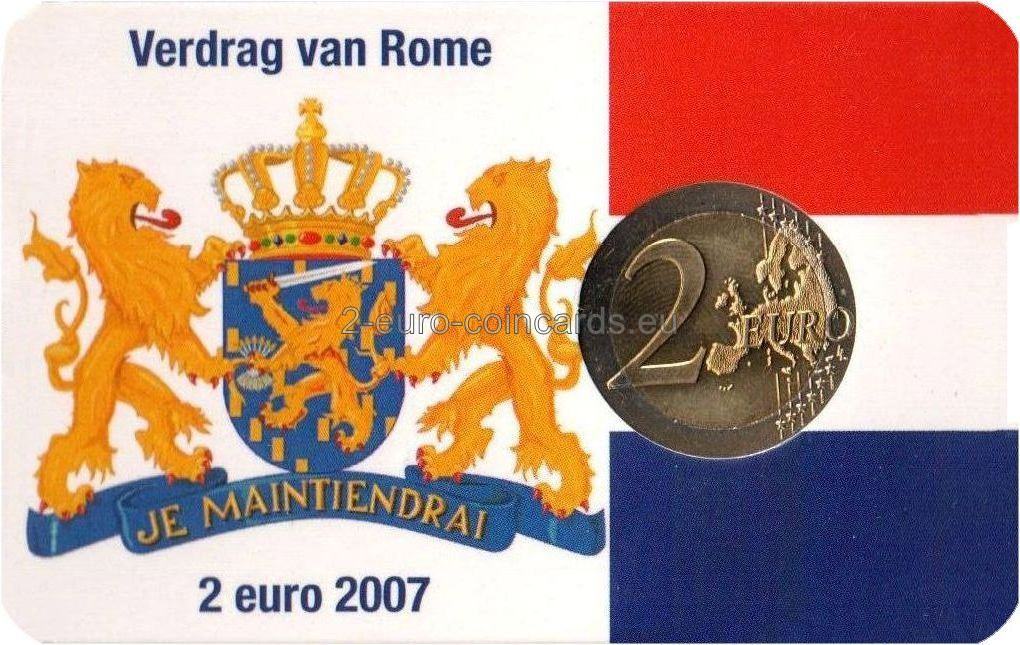 Stred mince zobrazuje Zmluvu podpísanú šiestimi zakladajúcimi členskými štátmi na pozadí evokujúcom dlažbu námestia Piazza del Campidoglio v Ríme, navrhnutú Michelangelom, kde bola 25. marca 1957 Zmluva podpísaná. Nad knihou (v rámci vzoru) je text „EUROPA“, v hornej časti je v dvoch riadkoch nápis: "VERDRAG VAN ROME 50 JAAR" (Rímska zmluva 50 rokov), a v spodnej časti v dvoch riadkoch je rok vydania "2007" a názov vydávajúceho štátu "KONINKRIJK DER NEDERLANDEN". Naľavo od textu 2007 je značka rytca Maartena Brouwera (plachetnica) a napravo značka mincovne v Utrechte (Merkúrová palica).