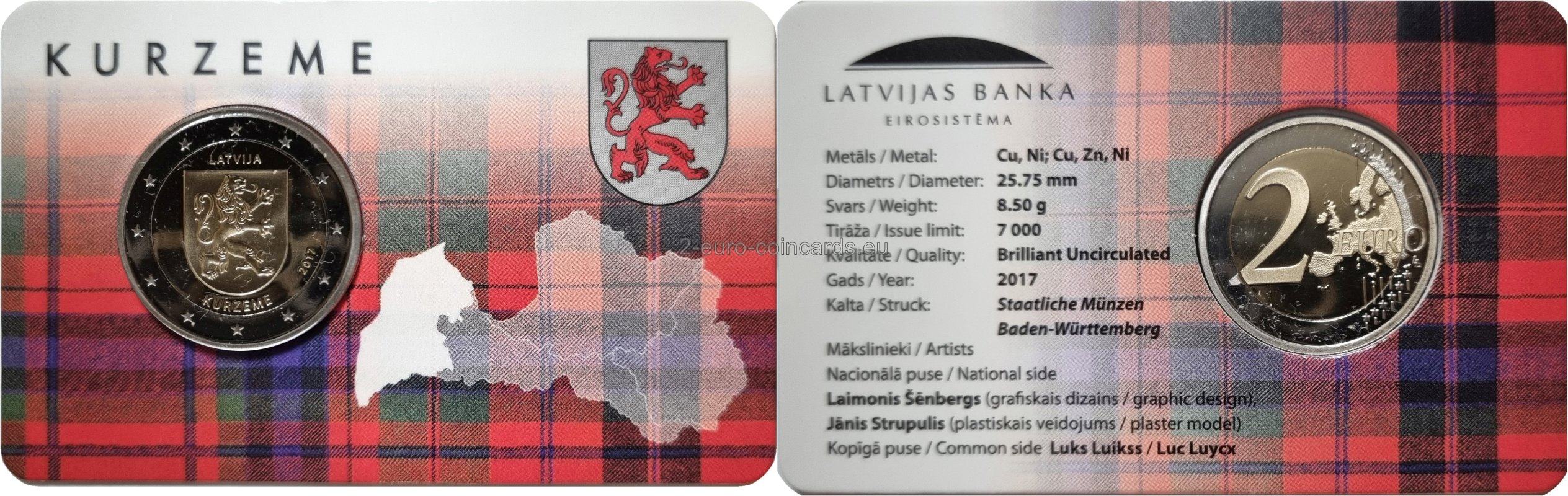 Motív zobrazuje erb oblasti Kurzeme. V hornej časti mince sa nachádza názov vydávajúcej krajiny „LATVIJA“ a v jej dolnej časti je umiestnený nápis „KURZEME“. Na pravej strane je uvedený rok vydania „2017“.