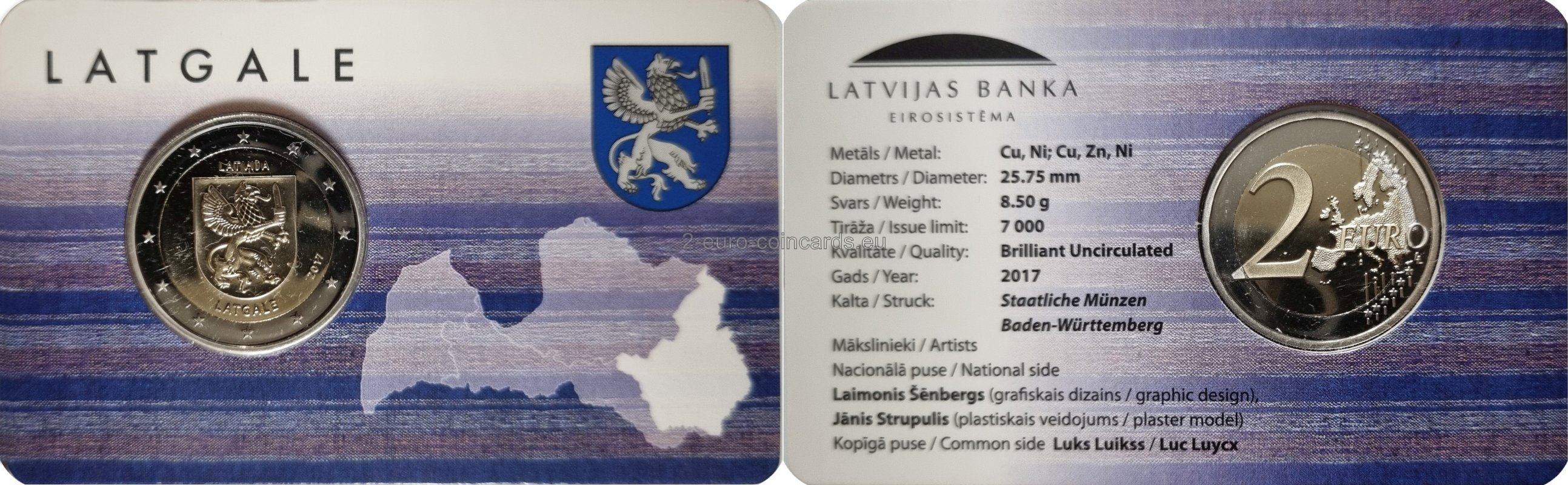 Motív zobrazuje erb oblasti Latgale. V hornej časti mince sa nachádza názov vydávajúcej krajiny „LATVIJA“ a v jej dolnej časti je umiestnený nápis „LATGALE“. Na pravej strane je uvedený rok vydania „2017“.