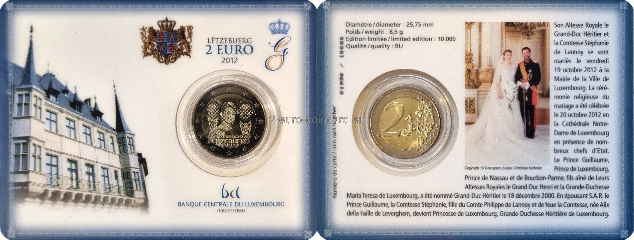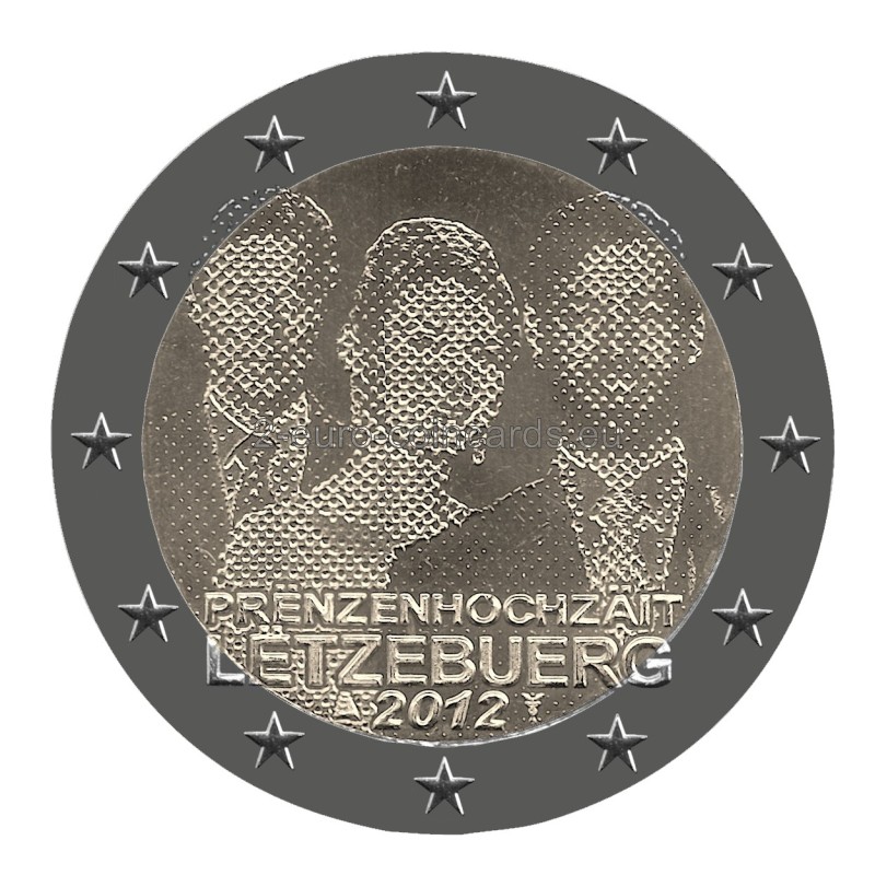 Na ľavej strane vnútornej časti minca znázorňuje podobizeň jeho kráľovskej výsosti veľkovojvodu Henricha a na pravej strane vnútornej časti podobizeň budúceho veľkovojvodu Viliama sčasti prekrývajúcu podobizeň grófky Štefánie. Na spodnej strane vnútornej časti mince sa objavujú nápisy „PRËNZENHOCHZAÏT“ a „LËTZEBUERG“ a rok „2012“, sprevádzané značkou Kráľovskej holandskej mincovne v Utrechte (Merkúrova palica) a značkou jej riaditeľa (Maarten Brouwer, plachetnica).