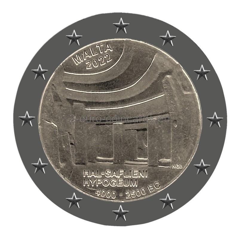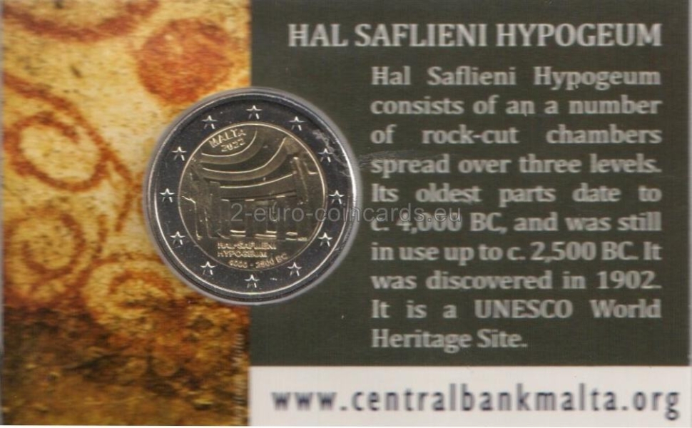 Na vzore je vyobrazená jedna z miestností hypogea. Vľavo hore sa nachádza názov vydávajúcej krajiny „MALTA“ a pod ním rok vydania „2022“. V spodnej časti je uvedený nápis „ĦAL–SAFLIENI HYPOGEUM“ a pod ním nápis „4 000 – 2 500 BC“. Vpravo je zobrazený antický oltár a dole sú iniciály autora vzoru Noela Galea Basona „NGB“.