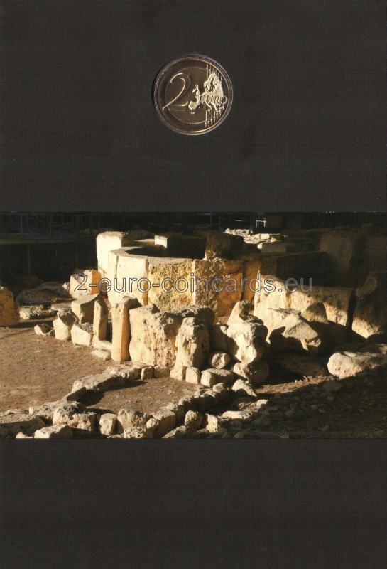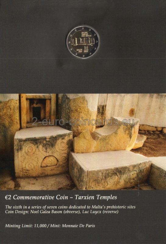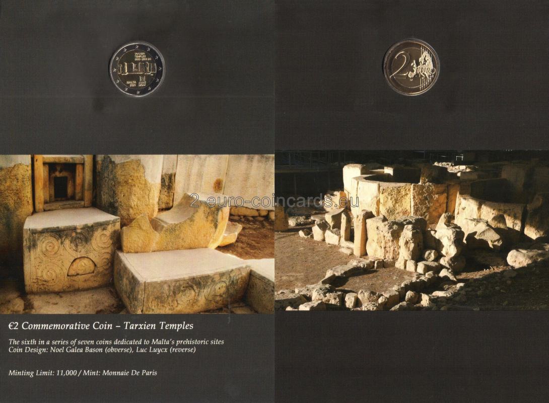 Na minci je vyobrazený detail prehistorickej stavby. V hornej časti je nápis „TARXIEN TEMPLES 3600 – 2500 BC“. V dolnej časti sa nachádza názov vydávajúcej krajiny „MALTA“ a pod ním rok vydania „2021“. Okolo roku vydania sa nachádzajú značky Parížskej mincovne Pesssac, roh hojnosti, jej hlavného rytca, Joaquin Jimenez, štvorec s malým štvorcom v ľavom hornom rohu. Vpravo je zobrazený antický oltár. Vpravo sú tiež iniciály autora "NGB" (Noel Galeu Bason).