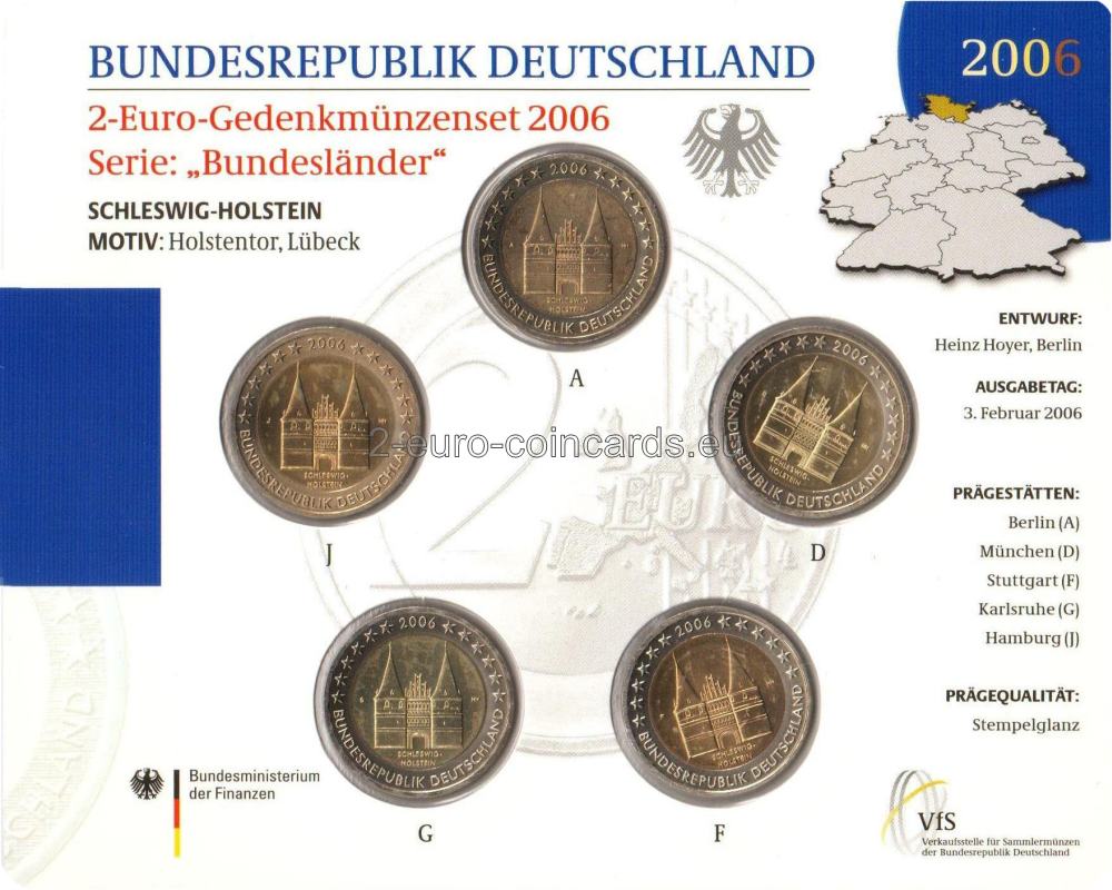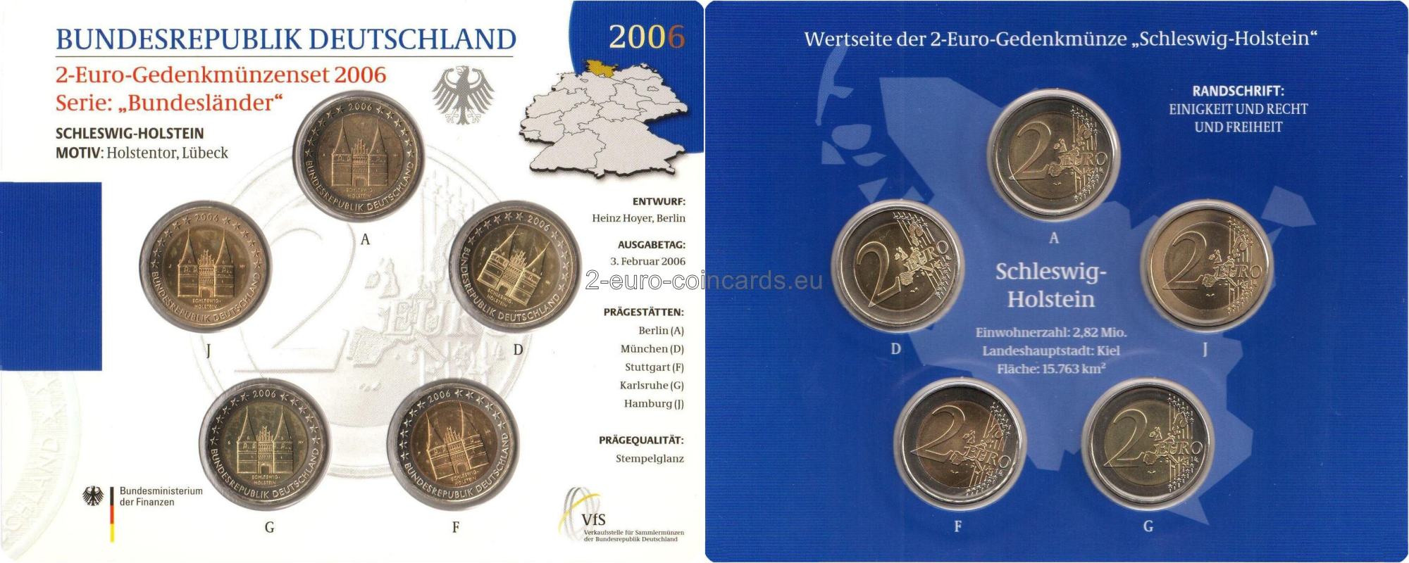 Zobrazenie na vnútornej strane mince znázorňuje stavebnú dominantu mesta Lübeck, mestskú bránu „Holstentor.“ Slovné spojenie „SCHLESWIG-HOLSTEIN“ je zobrazené pod bránou v spodnom výseku vnútornej časti. Iniciály rytca Heinza Hoyera „HH“ sú zobrazené v pravej časti grafického návrhu. V ľavej časti grafického návrhu sa nachádza značka príslušnej mincovne – jedno z písmen A, D, F, G, alebo J. V hornej časti vonkajšieho prstenca mince je vyobrazených dvanásť hviezd ktoré rozdeľuje letopočet razby „2006“. Slová „Bundesrepublik Deutschland“ vytvárajú polkruh v dolnej časti vonkajšieho prstenca.