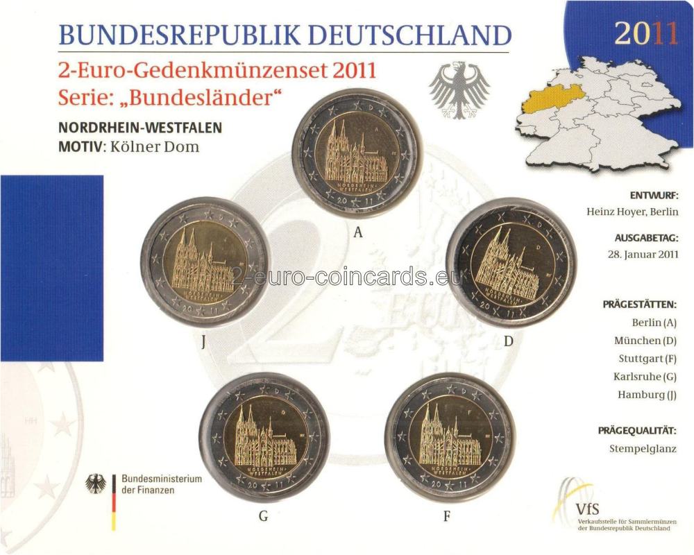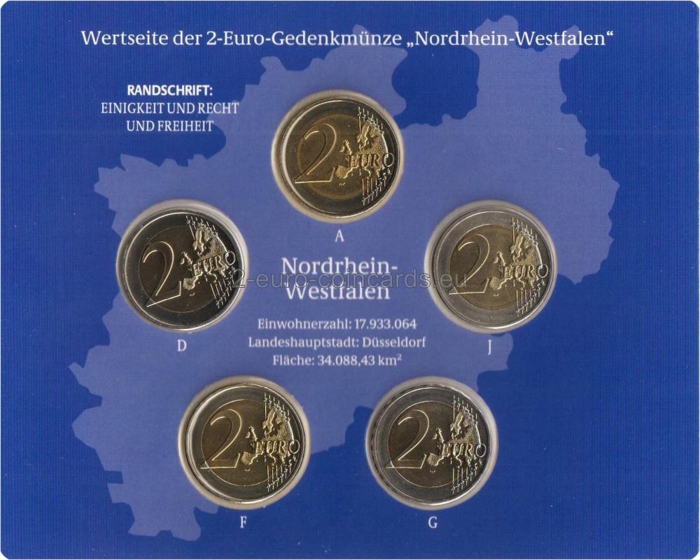 Motív znázorňuje kolínsky dóm v jeho celistvosti ako majstrovské dielo gotickej architektúry s dôrazom na krásu južného portálu. Názov NORDRHEIN-WESTFALEN tesne pod budovou spája zobrazenú budovu so štátom. Značka príslušnej mincovne – jedno z písmen A, D, F, G alebo J sa nachádza vo vnútornej časti mince vpravo hore, iniciály umelca Heinza Hoyera (HH) sa nachádzajú vo vnútornej časti vpravo.
