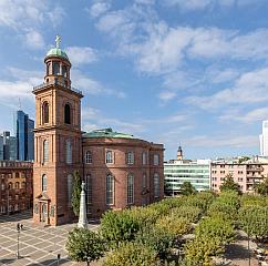Kostol svätého Pavla bol postavený v rokoch 1789 až 1833 ako náhrada za stredoveký kostol Barfüßerkirche, ktorý bol zbúraný v roku 1786, a slúžil ako hlavný frankfurtský protestantsko-lutheránsky kostol až do roku 1944, keď ho nahradil kostol svätej Kataríny. V neoklasicistickej kruhovej budove, ktorú navrhol architekt Johann Friedrich Christian Hess, sa v rokoch 1848 až 1849 schádzali delegáti frankfurtského Národného zhromaždenia, prvého parlamentu pre celé Nemecko. Kostol svätého Pavla sa tak popri zámku Hambach považuje za symbol demokratického hnutia v Nemecku. Z interiéru tohto pre kostol svätého Pavla a dejiny nemeckej demokracie najdôležitejšieho obdobia sa však nezachovalo takmer nič. Kostol svätého Pavla, podobne ako mnohé okolité budovy v starom meste Frankfurtu, vyhorel 18. marca 1944 po jednom z náletov na mesto. Po skončení druhej svetovej vojny, v rokoch 1947/48, bol prvou historickou budovou vo Frankfurte, ktorá bola okrem kužeľovej strechy obnovená zvonka, a to s pomocou darov zo všetkých nemeckých spolkových krajín. Vo vnútri bola pôvodná kostolná sála s galériami nahradená nízkym foyerom, nad ktorým sa nachádzala zhromažďovacia miestnosť s plenárnym sedením. Interiér bol kvôli nedostatku peňazí a stavebného materiálu riešený veľmi jednoducho. 18. mája 1948 bol pri príležitosti stého výročia Národného zhromaždenia znovu otvorený ako Dom všetkých Nemcov. Dňa 25. júna 1963 navštívil Frankfurt prezident USA John F. Kennedy, ktorý tiež prehovoril v kostole svätého Pavla. Vo svojom prejave zdôraznil, že "žiadna iná budova v Nemecku si nemôže oprávnenejšie nárokovať na čestný titul kolísky nemeckej demokracie". Kostola bol v rokoch 1988 až 1991 zrekonštruovaný. Dostal nové okná, ktoré pripomínali historické okná spred roku 1944. Obnova starej kupolovitej strechy, o ktorej sa tiež diskutovalo, sa však neuskutočnila; jednoduchá plochá strecha z povojnového obdobia sa teraz tiež považovala za hodnú zachovania.