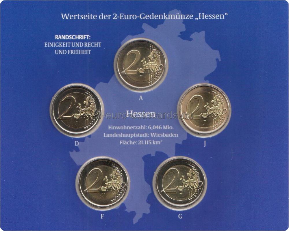 Vzor zobrazuje klasický pohľad na Kostol svätého Pavla vo Frankfurte („Pauluskirche“ bol sídlom prvého slobodne zvoleného zákonodarného orgánu Nemecka v roku 1849 a považuje sa za kolísku nemeckej demokracie), a preto má táto perspektíva najväčšiu hodnotu z rozpoznávacieho hľadiska. Vzor prenikavo znázorňuje napätie medzi dominantnou vežou a oválnou konštrukciou kostola. Trochu predimenzované schodisko ako keby pozývalo a zároveň slúžilo ako opora pod ním sa nachádzajúcemu nápisu „HESSEN“ (Spolková republika Hesensko, kde sa Kostol svätého Pavla nachádza). Na vnútornej strane je tiež zobrazený rok „2015“ a vľavo značka mincovne, vyjadrená písmenami A, D, F, G alebo J, ako aj označenie vydávajúceho štátu „D“ a značka rytca (iniciály „HH“ – Heinz Hoyer) vpravo.