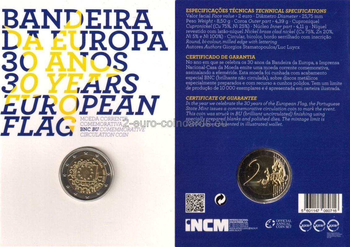 Štvrtá jednotná numizmatická séria je venovaná Európskej vlajke ktorá symbolizuje Európsku úniu a v širšom zmysle aj identitu a jednotu Európy. Má obdĺžnikový tvar s pomerom 2:3. Na modrom pozadí je 12 zlatých päťcípych hviezdičiek, ktoré sa podobajú číslam na ciferníku hodín. Počet hviezd nemá nič spoločné s počtom členských krajín, kruh je symbolom jednoty. Číslo 12 je tradične symbolom dokonalosti, úplnosti a jednoty. Ich počet zostáva rovnaký bez ohľadu na rozšírenie EÚ. Rada Európy podporila myšlienku, že vlajka, ktorú prijala, reprezentuje Európu ako celok, a preto vyzvala ostatné európske organizácie, aby prijali túto vlajku za svoj vlastný symbol. V roku 1983, keď sa v Miláne stretli hlavy štátov a vlád Európskych spoločenstiev, Európsky parlament uznal vlajku Rady Európy za symbol Európskych spoločenstiev. S formálnym súhlasom Rady Európy bola európska vlajka prvýkrát vztýčená 29. mája 1986 pred sídlom Európskej komisie za zvukov európskej hymny. So vznikom Európskej únie sa táto vlajka stala aj jej vlajkou. Na oslavu tridsiateho výročia vlajky EÚ ministri financií eurozóny rozhodli, že členské štáty eurozóny by mali vydať pamätné mince v hodnote 2 EUR s použitím spoločného motívu na národnej strane. Víťazný návrh vybrali občania a obyvatelia eurozóny vo verejnom internetovom hlasovaní. Mali na výber z piatich návrhov, ktoré boli vopred vybrané odbornou porotou na základe súťaže návrhov európskych mincovní, a vybrali motív, ktorý vytvoril pán Georgios Stamatopoulos, profesionálny návrhár banky Bank of Greece.