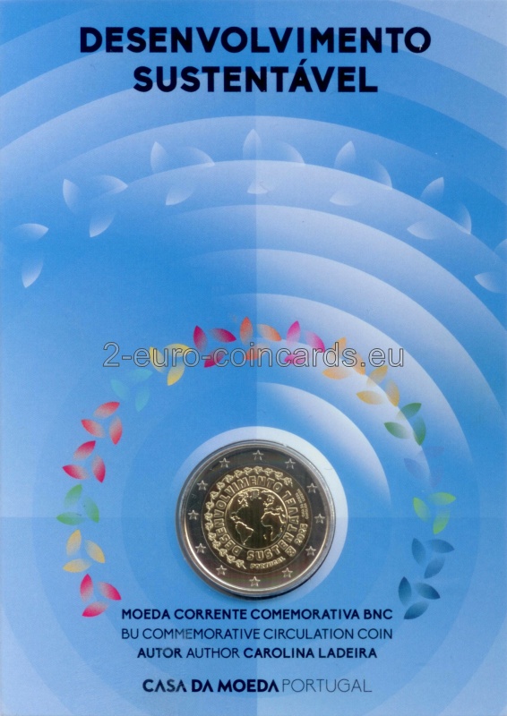 Na lícnej strane mince je štylizovaný glóbus ktorý je obklopený radom malých lístkov predstavujúcich prírodu a život. Tieto listy tvoria kruh, ktorý symbolizuje harmóniu a kolobeh udržateľnosti. Okolo zemegule je kruhový nápis „DESENVOLVIMENTO SUSTENTÁVEL“, čo vo portugalčine znamená „Udržateľný rozvoj“. V spodnej časti mince sa nachádza názov vydávajúcej krajinu „PORTUGAL“. Vedľa napravo je portugalský štátny znak a rok vydania „2025“. Na pravom okraji je názov portugalskej mincovne „CASA DA MOEDA“ a meno autora návrhu „CATARINA LAGEIRA“.