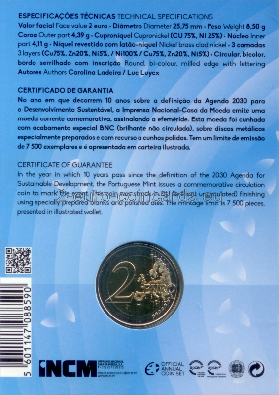 Minca zdôrazňuje udržateľný rozvoj. Táto téma, ktorá má zásadný význam pre budúcnosť našej planéty, odráža portugalský záväzok k ochrane životného prostredia a kolektívnej zodpovednosti. Táto minca tak symbolizuje potrebu spojiť sily v záujme udržateľnejšej a harmonickejšej budúcnosti.