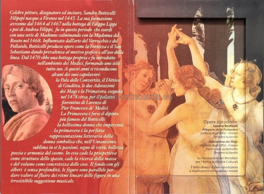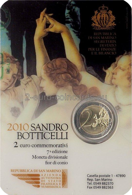 Vnútorná časť mince zobrazuje Radosť, detail jednej z troch tancujúcich grácií, ktorá je voľne inšpirovaná obrazom „Jar“ (La Primavera) Sandra Botticelliho. Hore je vročenie „2010“. Naľavo je názov vydávajúcej krajiny „SAN MARINO“ a znak mincovne „R“, napravo iniciála „m“ autora Roberta Mauriho.
