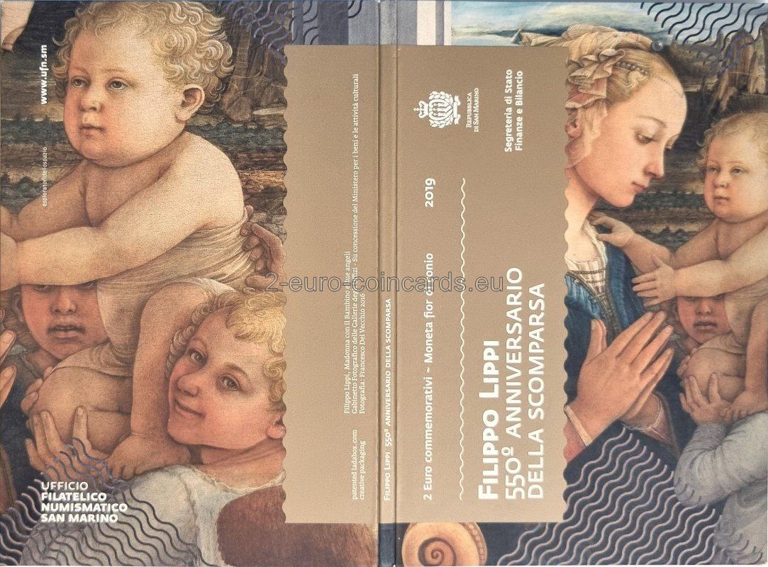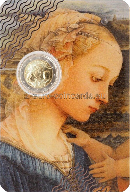 Na minci je v strede vyobrazená Madona s dieťaťom, detail maľby Filippa Lippiho „Madona s dieťaťom a dvaja anjeli“, v hornej časti je nápis „SAN MARINO“ a „FILIPPO LIPPI“ a vľavo rok „1469“ a písmeno R označujúce mincovňu v Ríme. V dolnej časti sa nachádzajú iniciály autorky Marie Angely Cassinolovej „M.A.C.“ a v strede rok „2019“.