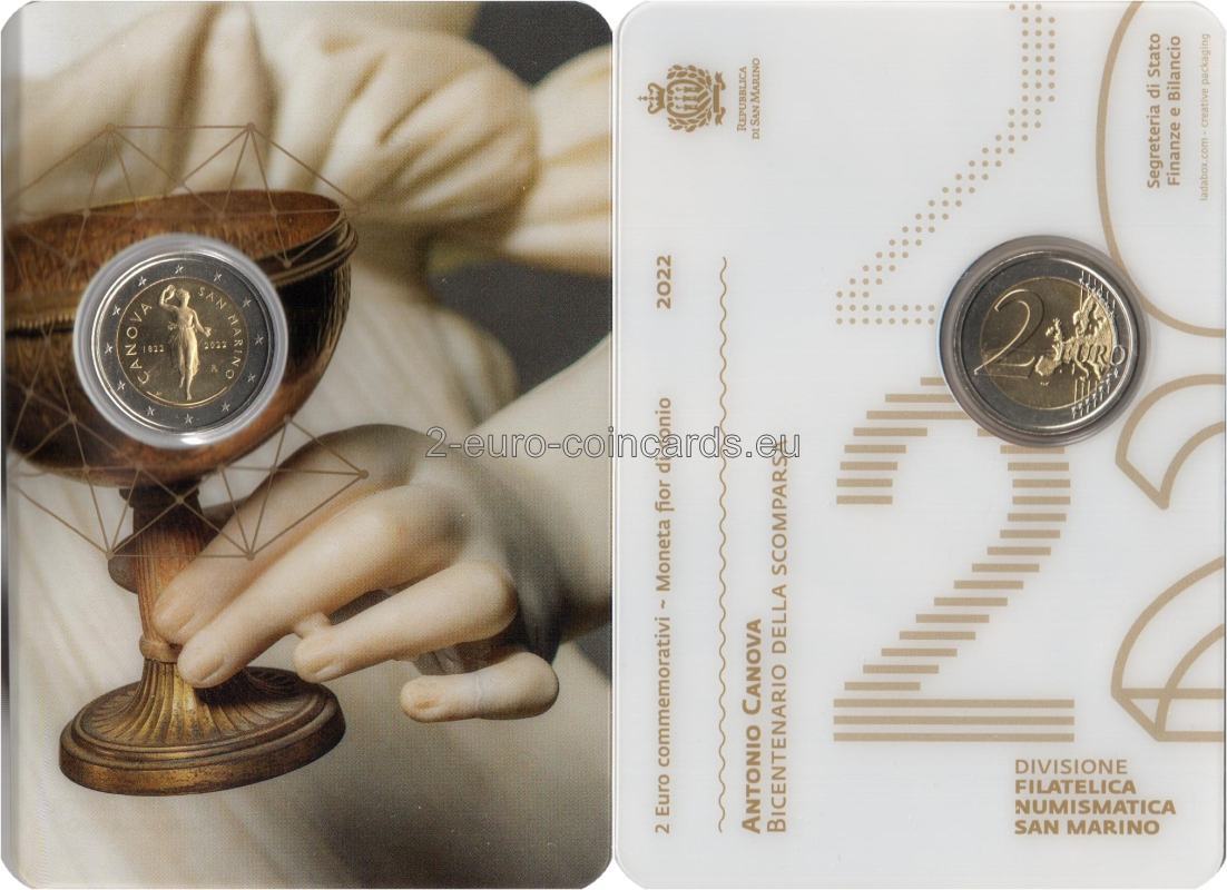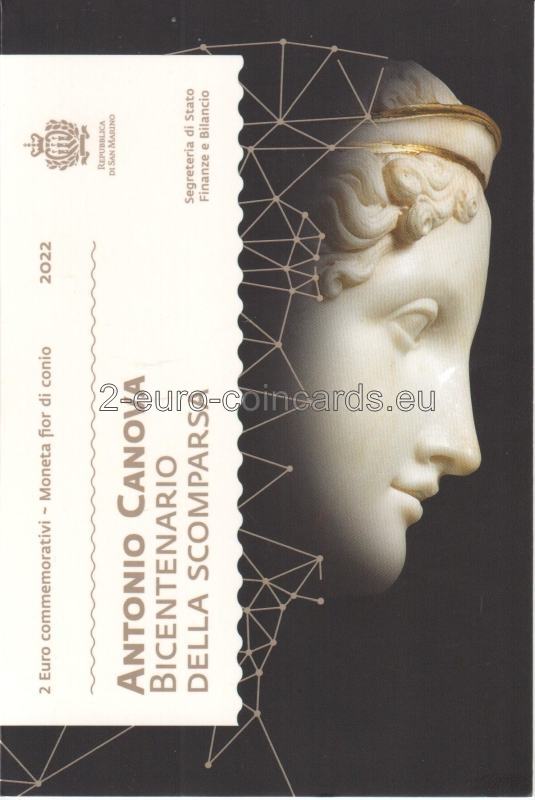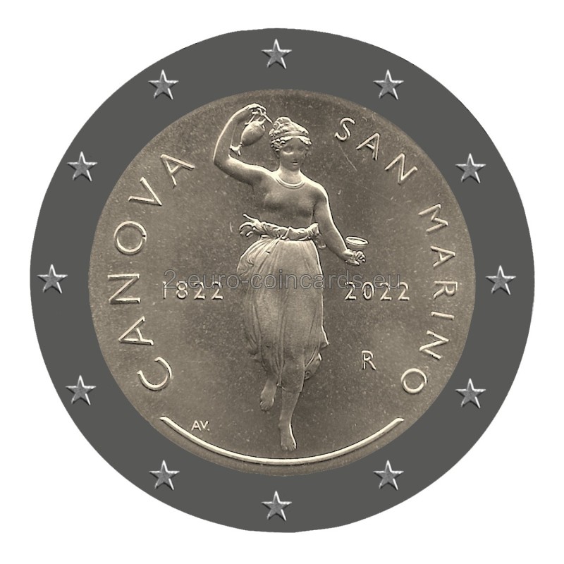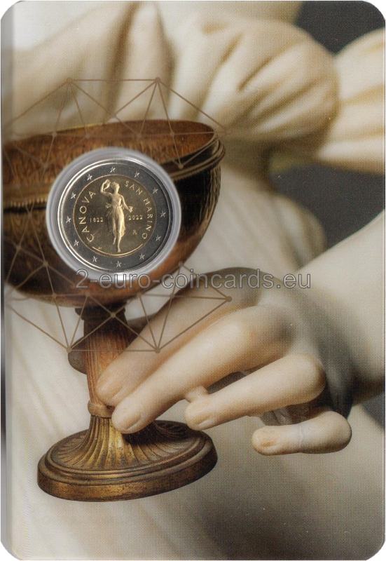 V strede vnútorného kruhu je vyobrazená bohyňa Héba prevzatá z diela Antonia Canovu, ktoré sa nachádza v umeleckej galérii mestského múzea San Domenico vo Forlì. Na okraji disku je uvedený názov vydávajúceho štátu "SAN MARINO" (vpravo) a meno umelca "CANOVA" (vľavo). Po stranách sochy sú vyryté aj letopočty "1822" (vľavo) a "2022" (vpravo), iniciálky autora mince Antonia Vecchia "AV." a značka rímskej mincovne (písmeno "R").