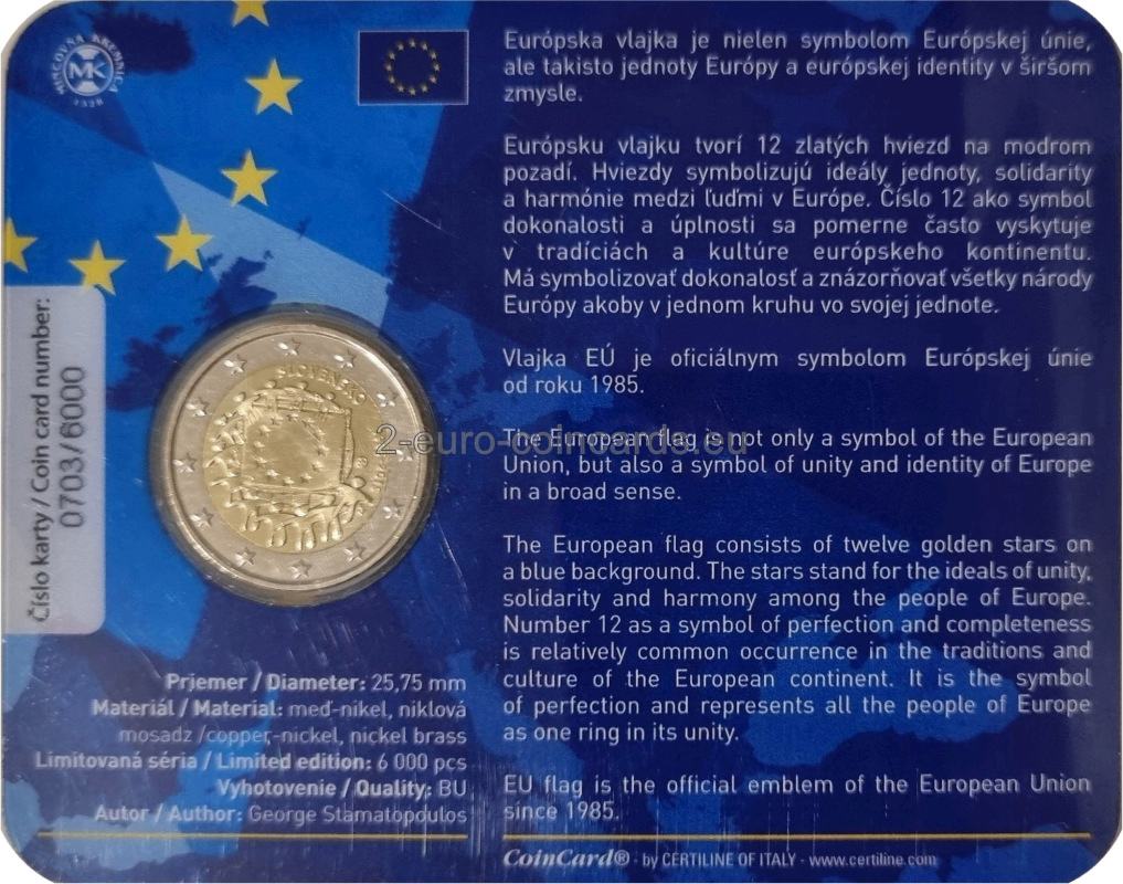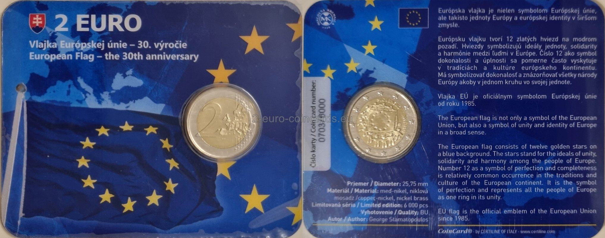 Štvrtá jednotná numizmatická séria je venovaná Európskej vlajke ktorá symbolizuje Európsku úniu a v širšom zmysle aj identitu a jednotu Európy. Má obdĺžnikový tvar s pomerom 2:3. Na modrom pozadí je 12 zlatých päťcípych hviezdičiek, ktoré sa podobajú číslam na ciferníku hodín. Počet hviezd nemá nič spoločné s počtom členských krajín, kruh je symbolom jednoty. Číslo 12 je tradične symbolom dokonalosti, úplnosti a jednoty. Ich počet zostáva rovnaký bez ohľadu na rozšírenie EÚ. Rada Európy podporila myšlienku, že vlajka, ktorú prijala, reprezentuje Európu ako celok, a preto vyzvala ostatné európske organizácie, aby prijali túto vlajku za svoj vlastný symbol. V roku 1983, keď sa v Miláne stretli hlavy štátov a vlád Európskych spoločenstiev, Európsky parlament uznal vlajku Rady Európy za symbol Európskych spoločenstiev. S formálnym súhlasom Rady Európy bola európska vlajka prvýkrát vztýčená 29. mája 1986 pred sídlom Európskej komisie za zvukov európskej hymny. So vznikom Európskej únie sa táto vlajka stala aj jej vlajkou. Na oslavu tridsiateho výročia vlajky EÚ ministri financií eurozóny rozhodli, že členské štáty eurozóny by mali vydať pamätné mince v hodnote 2 EUR s použitím spoločného motívu na národnej strane. Víťazný návrh vybrali občania a obyvatelia eurozóny vo verejnom internetovom hlasovaní. Mali na výber z piatich návrhov, ktoré boli vopred vybrané odbornou porotou na základe súťaže návrhov európskych mincovní, a vybrali motív, ktorý vytvoril pán Georgios Stamatopoulos, profesionálny návrhár banky Bank of Greece.