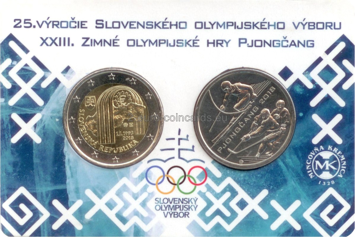 Druhá minca je venovaná 25. výročiu zaolženia SOV, na rubovej starne sa nachádza Kriváň, olympijské logo so slovenským dvojkrížom, a textom 25. výročie SOV. Lícová strana zobrazuje zjazdára a hokejistov medzi nimi je nápis Pjongčang.