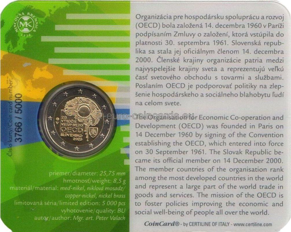 Vpravo hore na národnej strane vzoru je vyobrazená koncepcia digitálneho humanizmu – tlačené obvody v tvare ľudského mozgu a v jeho strede kruh, ktorý predstavuje mikroprocesor. Pri pravom dolnom okraji je umiestnený štátny znak Slovenska. Vo štvorci, ktorý sa čiastočne prekrýva s hlavným motívom vzoru, sú vpísané slová „20. VÝROČIE“ a „VSTUP SR DO OECD“. Pod štvorcom je uvedený názov vydávajúcej krajiny „SLOVENSKO“ a pod ním rok vydania „2020“. Medzi štvorcom a ľavým okrajom vzoru sa nachádza značka Mincovne Kremnica pozostávajúca z písmen „MK“ medzi dvoma razidlami. Pod značkou mincovne sú štylizované písmená „PV“ označujúce autora vzoru Petra Valacha. Vo vonkajšom prstenci mince je vyobrazených dvanásť hviezd vlajky Európskej únie ktoré symbolizujú dokonalosť, celistvosť a ideál jednoty a pripomína aj počet mesiacov a ciferník.