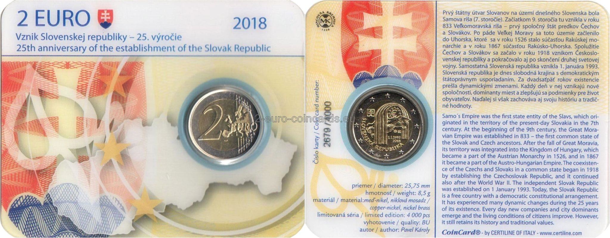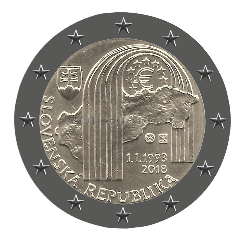 Vzor symbolizuje vstup Slovenska do Európskej únie a eurozóny. Štylizovaný portál preklenuje mapu Slovenska a symbol eura obkolesený hviezdičkami Európskej únie, z ktorých niektoré sú prekryté mapou. Na ľavej strane vzoru sa nachádza štátny znak Slovenska. V ľavej časti je smerom dole v polkruhu uvedený názov vydávajúcej krajiny „SLOVENSKÁ REPUBLIKA“. Vpravo pod mapou je umiestnený dátum založenia republiky „1.1.1993“ a pod ním rok vydania mince „2018“. Medzi mapou a dátumom je značka Mincovne Kremnica, ktorú tvoria iniciály „MK“ umiestnené medzi dvoma razidlami, a štylizované iniciály autora návrhu Pavla Károlyho „PK“.
