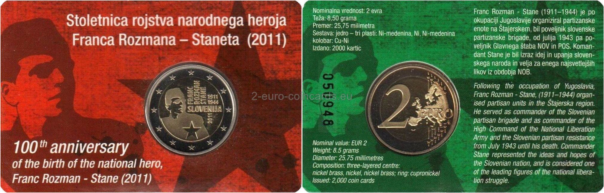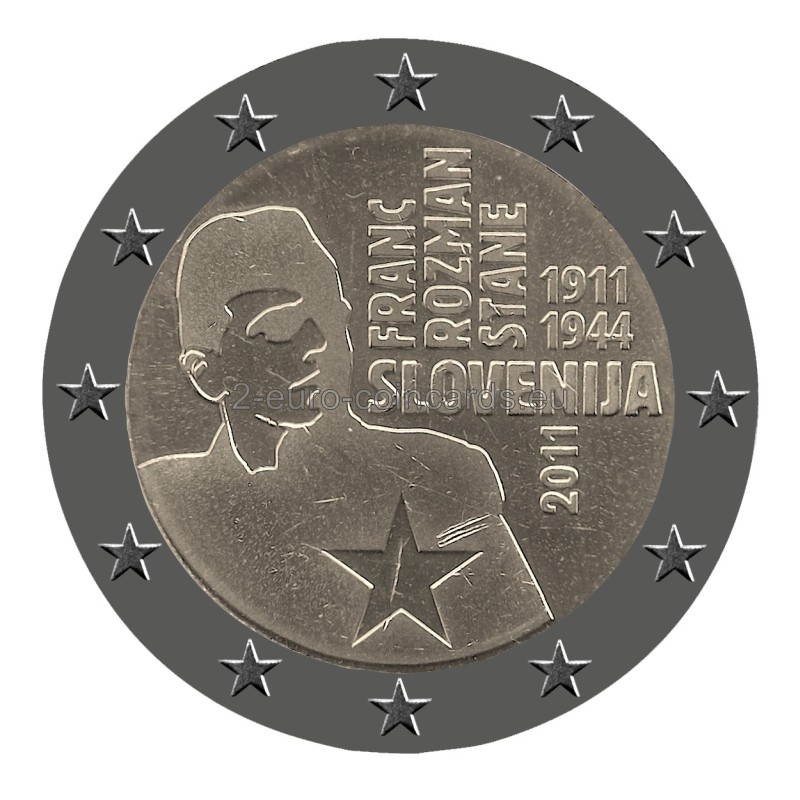 Na vnútornom disku je štylizovaný portrét Franza Rozmana. Na jeho hrudi je päťcípa hviezda. Vpravo je vyrytý názov vydávajúceho štátu "SLOVENIJA" a nad ním zvislý nápis v troch riadkoch: "FRANC ROZMAN STANE" a vodorovne v 2 riadkoch sú uvedené roky hrdinovho života: "1911 1944". Pod názvom štátu je vertikálne uvedený aj rok vydania mince: "2011".