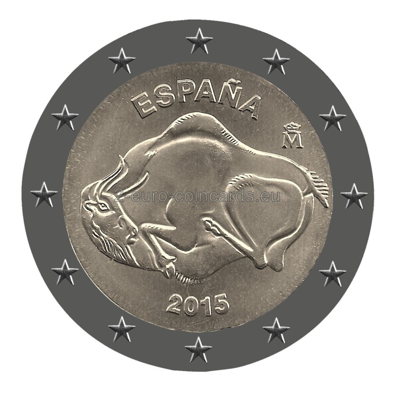 Pokračujúc v téme pamätných mincí v hodnote 2 eur, ktoré boli iniciované v roku 2010 na pripomenutie objektov alebo miest zapísaných do zoznamu svetového dedičstva UNESCO, FNMT-RCM (Fábrica Nacional De Moneda Y Timbre - Real Casa De La Moneda) vydáva šiestu mincu, ktorá je pri tejto príležitosti venovaná jaskyni Altamira a paleolitickému skalnému umeniu v severnom Španielsku (zapísaná v roku 1985). Jaskyňa má tú česť, že je prvým miestom na svete, kde bola identifikovaná existencia skalného umenia z obdobia najstaršieho paleolitu. V jaskyni boli namaľované alebo vyryté zubry, kone, jelene, ruky a znaky, ktoré sú rozmiestnené po celej jaskyni, pričom najznámejšie sú polychrómované maľby.