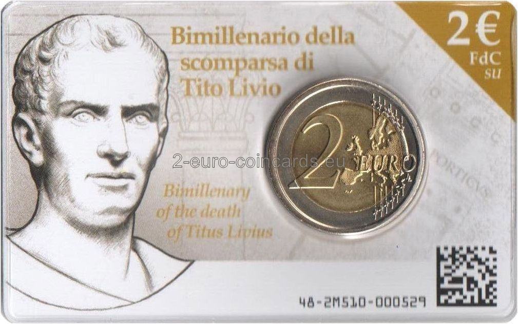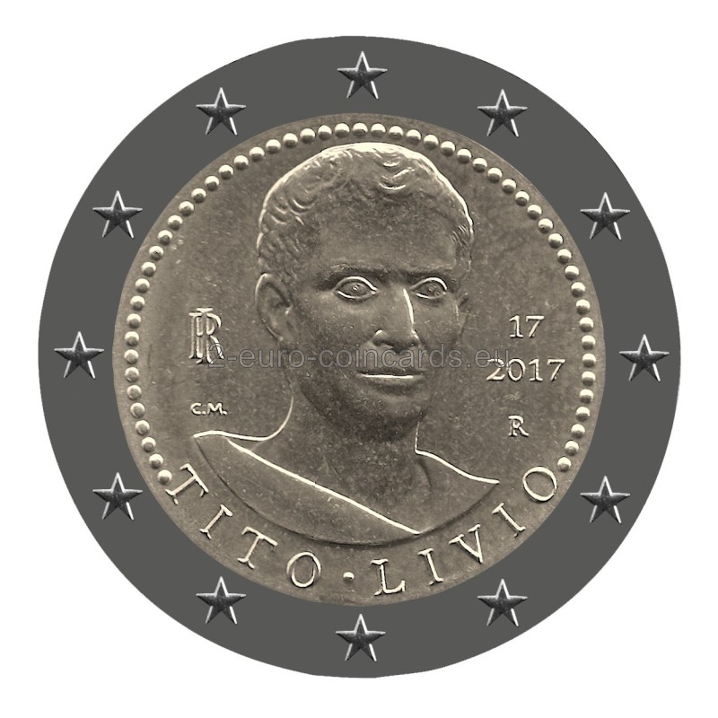 Motívom mince je busta rímskeho historika Tita Livia prebraná z diela Lorenza Lareseho Morettiho. Vľavo je uvedené logo Talianskej republiky „RI“ a iniciály autorky návrhu „C.M.“ (Claudia Momoni). Vpravo je uvedený rok smrti Livia „17“, rok vydania mince „2017“ a značka rímskej mincovne „R“. Okolo motívu sú v kruhu umiestnené bodky a nápis „TITO • LIVIO“.