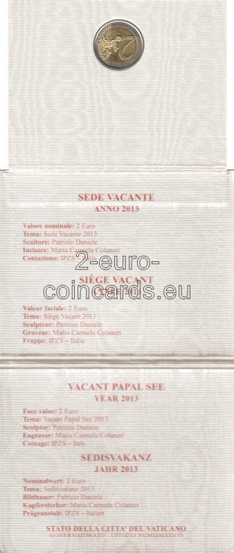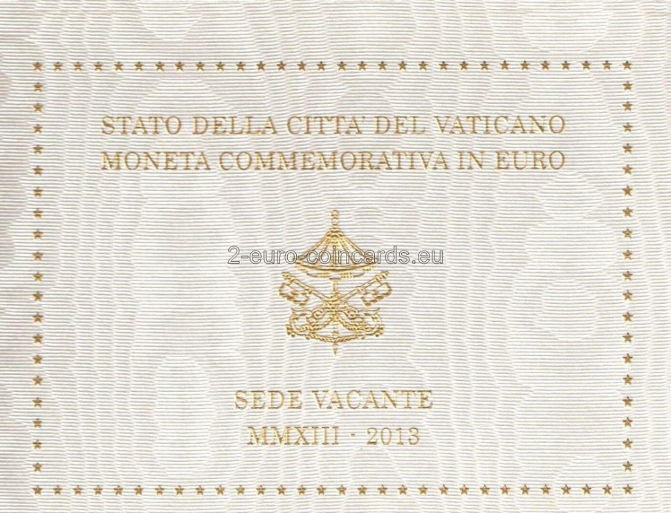 Na vzore je zobrazený erb kardinála camerlenga a nad ním symbol Apoštolskej komory, dva malé kríže, vľavo slová „CITTÀ DEL VATICANO“ a vpravo nápis „SEDE VACANTE MMXIII“. Kamerlango je jedným z najvyšších hodnostárov pápežskej kúrie. V čase pápežskej sedisvakancie sa camerlengo stáva hlavou rímskokatolíckej cirkvi i štátu Vatikán.