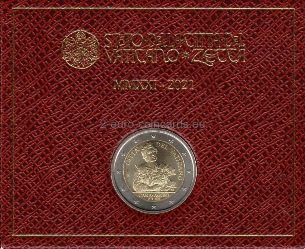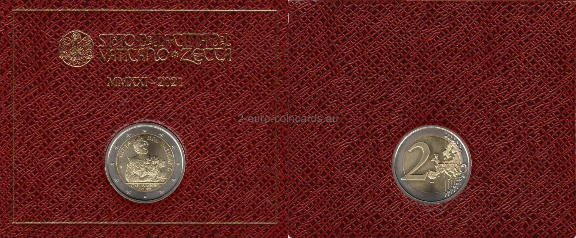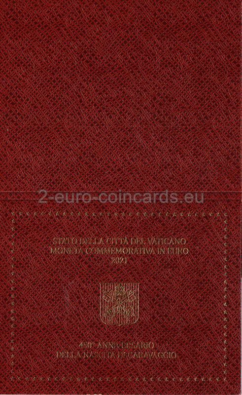 Vnútorný disk zobrazuje Caravaggiovu maľbu mladého muža s košom ovocia. V hornej časti je pozdĺž okraja disku uvedený názov vydávajúceho štátu "CITTA' DEL VATICANO". V spodnej časti je meno umelca "CARAVAGGIO" a v druhom riadku roky "1571-2021". Nachádza sa tu aj značka mincovne (písmeno "R"), iniciály rytca "UP.INC" a umelca "CP".
