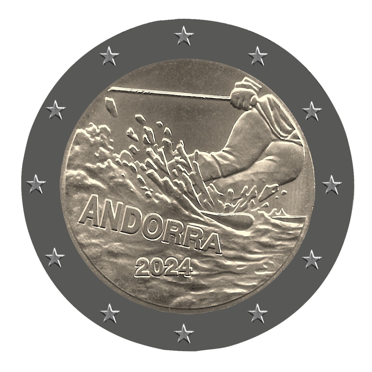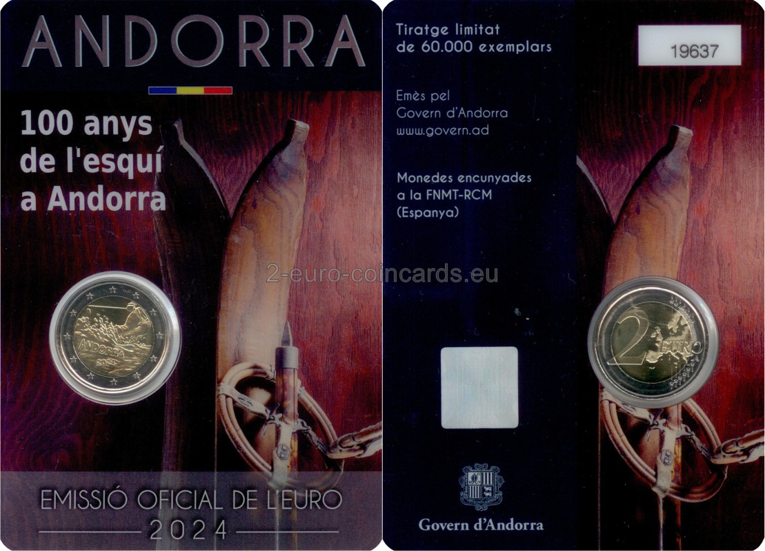 Andorrské kniežatstvo vydáva v roku 2024 pamätnú euromincu pri príležitosti stého výročia lyžovania v krajine. Táto špeciálna emisia poukazuje na historický a kultúrny význam tejto aktivity pre andorrský národ. Okrem toho minca v hodnote dvoch eur odráža snahu Andorry uctiť si a zachovať svoje športové a turistické dedičstvo. Rok vydania 2024 tak predstavuje dôležitý medzník v športovej histórii krajiny. Na začiatku 20. storočia snehové zrážky nerobili obyvateľom Andorry veľkú radosť, lebo veľmi sťažovali spojenie medzi dedinami. V roku 1924 musel Miquel Farré, poštár zo Soldeu, napriek zlému počasiu pokračovať vo svojej obchôdzke. Keď prišiel do dediny Porte, zistil, že jeho francúzski susedia používajú na pohyb v snehu dlhé lišty z jaseňového dreva, ktoré majú k nohám priviazané remienkami. Bez váhania vymenil svoje snežnice za tieto nové klzké pomôcky. Jeho príchod do Soldeu bol senzáciou. Tento prvý pár lyží si rodina Farré dodnes cení. Prvé lyže sa objavili v kniežatstve a spočiatku sa používali ako dopravný prostriedok na uľahčenie zimného cestovania.