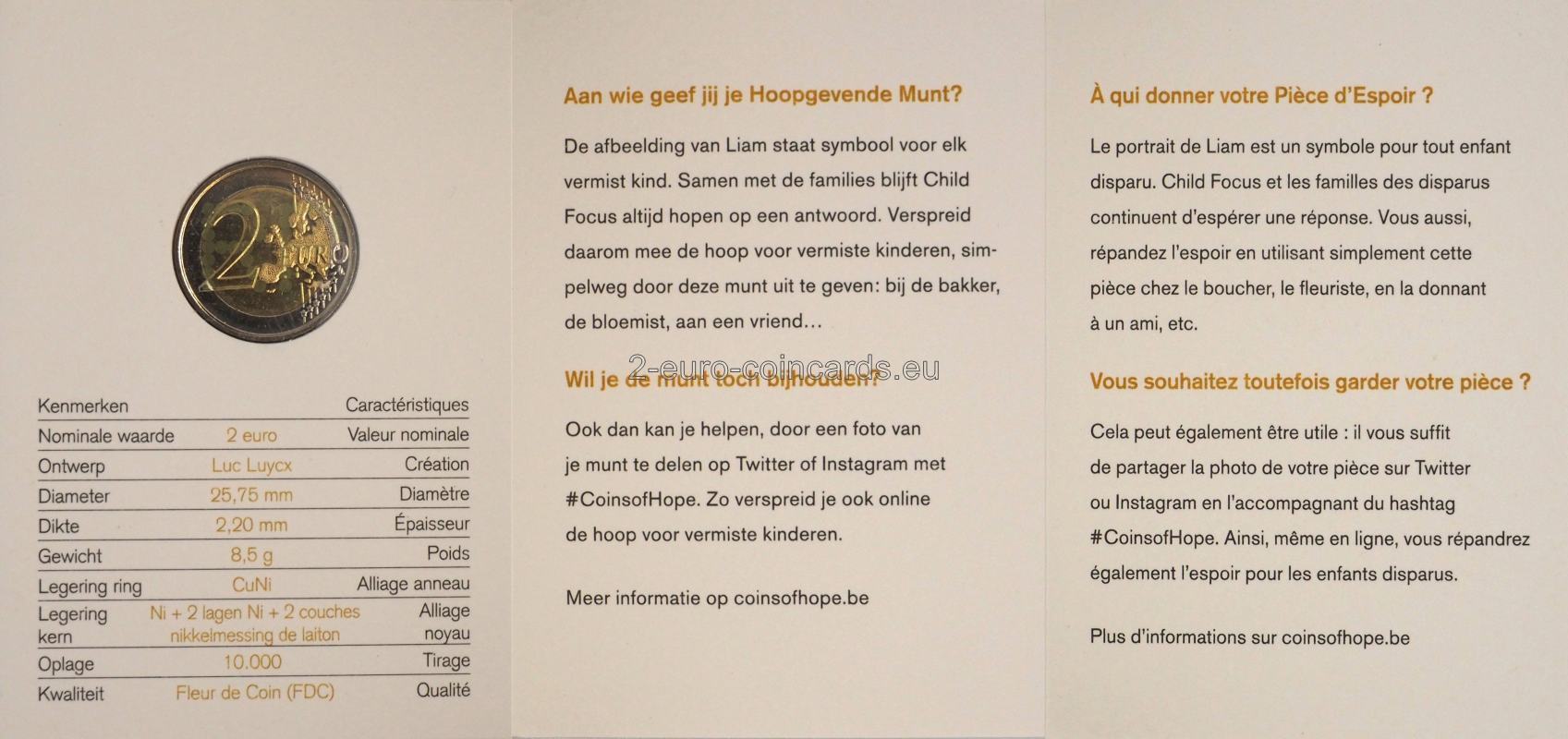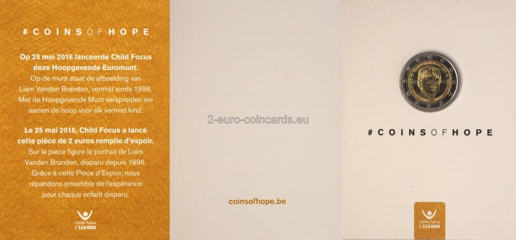 V strede vnútornej časti mince je znázornená tvár Liama Vandena Brandena, okolo ktorej sú nápisy „MISSING-DISPARU-VERMIST“, „WWW.CHILDFOCUS.BE“, názov vydávajúcej krajiny v troch jazykoch „BELGIQUE-BELGIE-BELGIEN“ a rok vydania 2016. Naľavo od motívu sa nachádza značka belgickej mincovne (profil archanjela Michala s prilbicou) a napravo od motívu je značka generálneho riaditeľa mincovne Bernarda Gillarda (mačka).