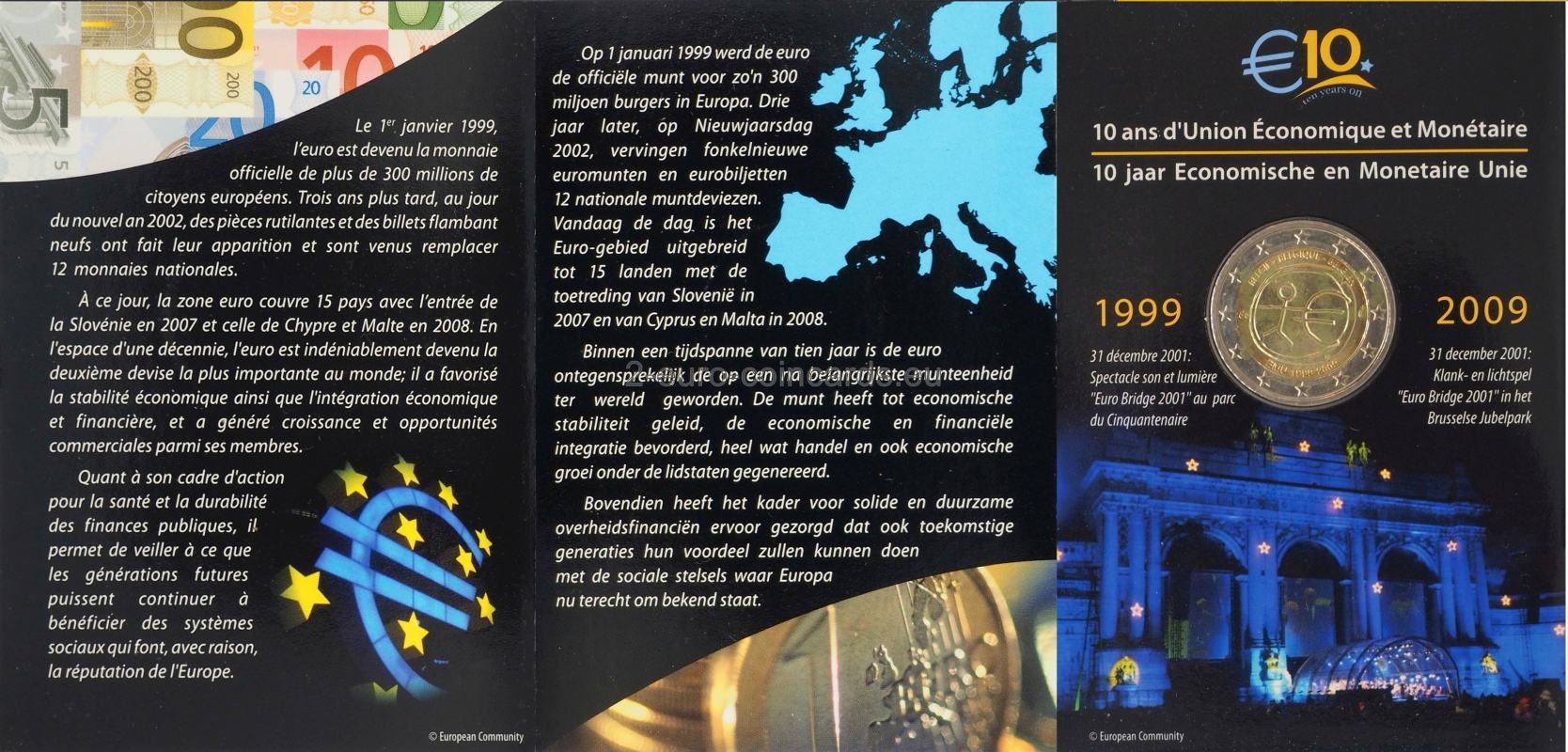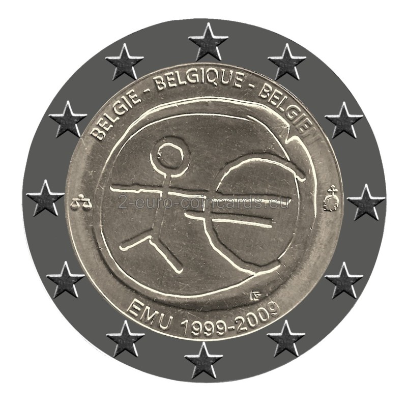 V strednej časť mince je zobrazená štylizovaná ľudská postava, ktorej ľavá ruka je predĺžená do symbolu meny euro. Pod symbolom eura sa nachádzajú iniciálky umelca „ΓΣ“. Názov vydávajúcej krajiny BELGIE BELGIQUE BELGIEN sa nachádza nad výtvarným motívom, pričom označenie rokov 1999 – 2009 a akronym EMU je pod týmto motívom. Po stranách vnútorného disku sú značky riaditeľa belgickej mincovne Romaina Coenena (váhy) a vpravo belgickej kráľovskej mincovne (hlava archanjela Michaela).