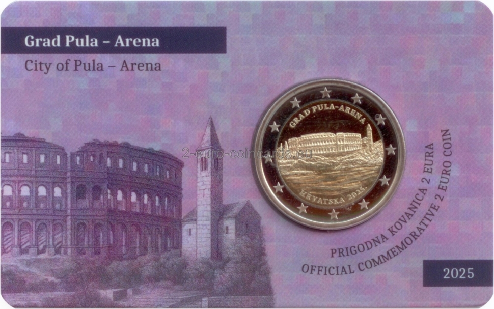 Zadná strana mince v strede zobrazuje amfiteáter v Pule (Arena), jednu z najvýznamnejších starobylých pamiatok v Chorvátskej republike, z pohľadu od Jadranského mora ktoré je zobrazené pod hlavným motívom, aby sa zdôraznil výrazný stredomorský charakter Chorvátska. Na pravej strane amfiteátra je obraz kostola svätého Antona postaveného v 30. rokoch minulého storočia, ktorý je súčasťou panoramatického výhľadu na mesto Pula. V dolnej časti je názov vydávajúcej krajiny „HRVATSKA“ (Chorvátsko), rok vydania „2025“ a v hornej časti slová „GRAD PULA-ARENA“ (mesto Pula – amfiteáter).