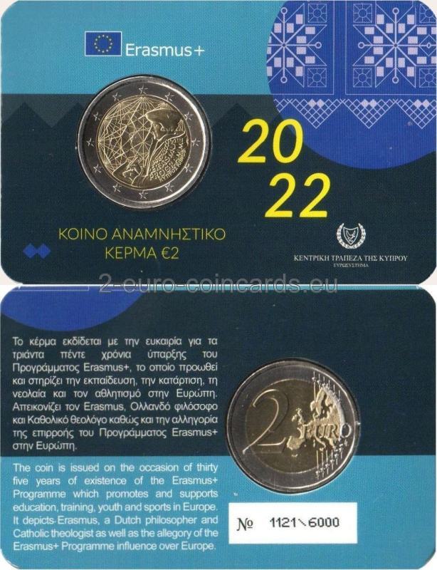 Vydanie 5. celoeurópskej série pamätných mincí je venované 35. výročiu programu Erasmus v roku 2022. Erasmus je štipendijný vzdelávací program na výmenu študentov, postgraduálnych študentov, vysokoškolákov, pedagogických zamestnancov medzi univerzitami zúčastnených krajín. Cieľom programu Erasmus je zlepšiť úroveň vzdelávania v Európe. V rámci programu sa môžete nielen učiť nové profesie a vykonávať výskum vo vedeckých oblastiach, ale aj získať praktické pracovné skúsenosti vo vybranej špecializácii. Zakladateľkou programu je Sofia Corradi z Talianska. Vyštudovala právo na univerzite Sapienza v Ríme a v roku 1957 odišla študovať do Spojených štátov amerických vďaka Fulbrightovmu štipendiu. Po absolvovaní Kolumbijskej univerzity získal Corrad magisterský titul v odbore komparatívne univerzitné právo. Ale po návrate do vlasti jej talianska univerzita neuznala magisterský titul získaný v zahraničí. To bol zlom, ktorý ju prinútil brániť práva výmenných študentov v iných krajinách. Sofia Corrad sa po ukončení štúdia, súbežne so svojou univerzitnou kariérou, stala vedeckou poradkyňou asociácie talianskych rektorov univerzít, čo jej umožnilo zviditeľniť jej myšlienku v akademických kruhoch aj v zahraničí. V roku 1969 pripravila memorandum, v ktorom načrtla základný princíp projektu Erasmus. V roku 1976 bol tento princíp schválený na európskej úrovni prijatím rezolúcie Európskeho hospodárskeho spoločenstva z 9. februára 1976, ktorá podporovala výmeny študentov medzi univerzitami v rôznych krajinách. Po 10-ročnom experimente (1976-1986, desaťročie „spoločných učebných osnov“) bol v roku 1987 spustený program Erasmus. Projekt dostal svoje meno na počesť holandského renesančného filozofa, teológa a humanistu Erazma Rotterdamského, ktorý žil a pracoval v rôznych európskych krajinách, aby si rozšíril obzory. Slovo „Erasmus“ je zároveň backronymom anglického výrazu „European Region Action Scheme for the Mobility of University Students“.