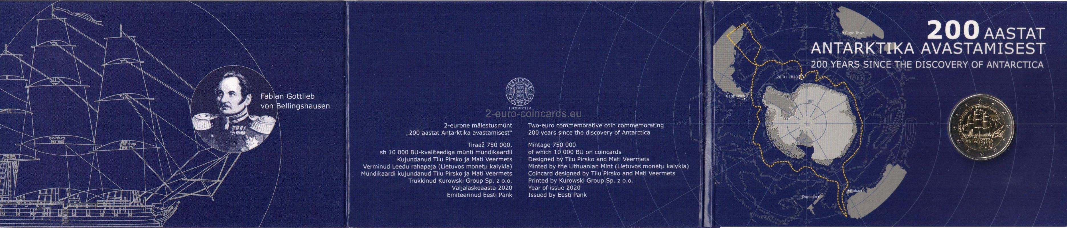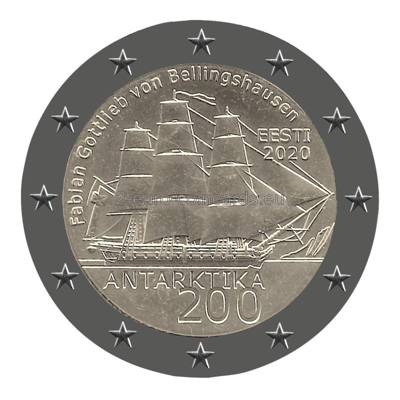 Na vzore je vyobrazený motív plávajúcej plachetnice, napravo od nej je štylizovaný ľad. Sú tam aj nápisy „Fabian Gottlieb von Bellingshausen“ a „ANTARKTIKA 200“, názov krajiny „EESTI“ a rok vydania „2020“.