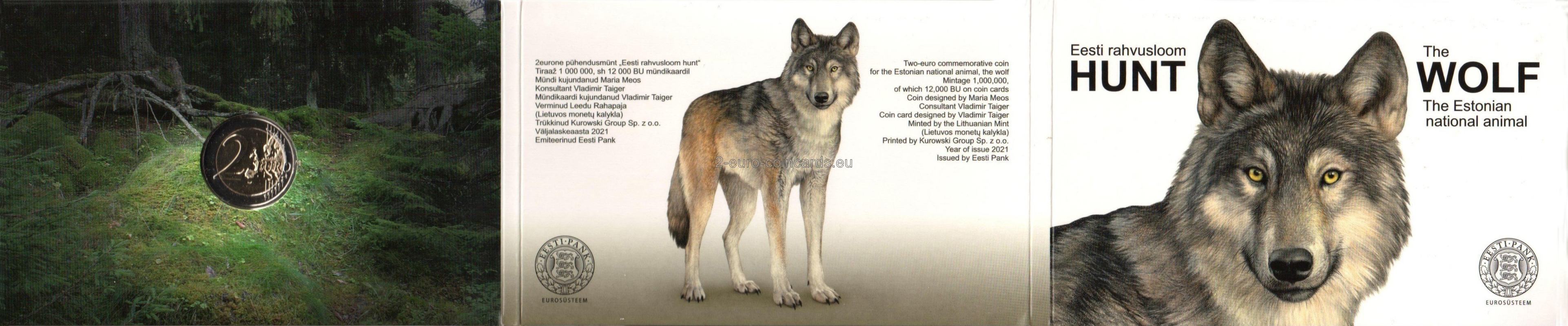Na vzore je znázornená silueta vlka a lesa. Pri okraji vnútorného prstenca mince sa vľavo nachádza názov krajiny „EESTI“, vpravo rok vydania „2021“ a hore slová „CANIS LUPUS“ (latinské pomenovanie vlka).