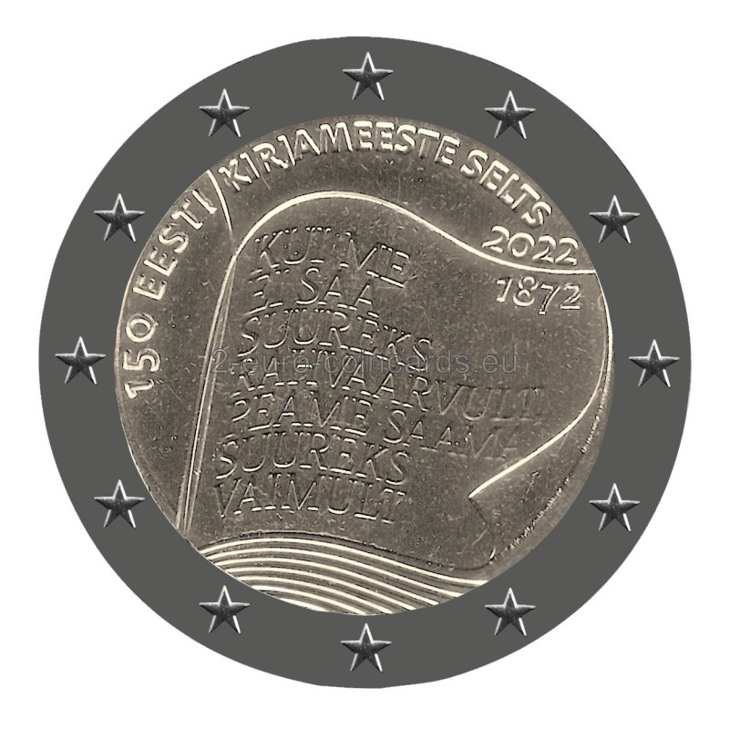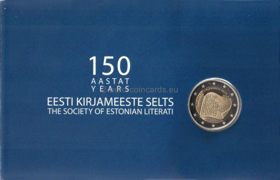 Vzor vyobrazuje strany knihy a špičku brka. V hornej časti je v polkruhu uvedený nápis „EESTI KIRJAMEESTE SELTS“ a rok vydania „2022“. Nápis na stranách knihy znie „KUI ME EI SAA SUUREKS RAHVAARVULT, PEAME SAAMA SUUREKS VAIMULT“, čo v preklade znamená, že „Ak nemôžeme byť veľkým národom v počte, musíme mať aspoň veľkého ducha“.