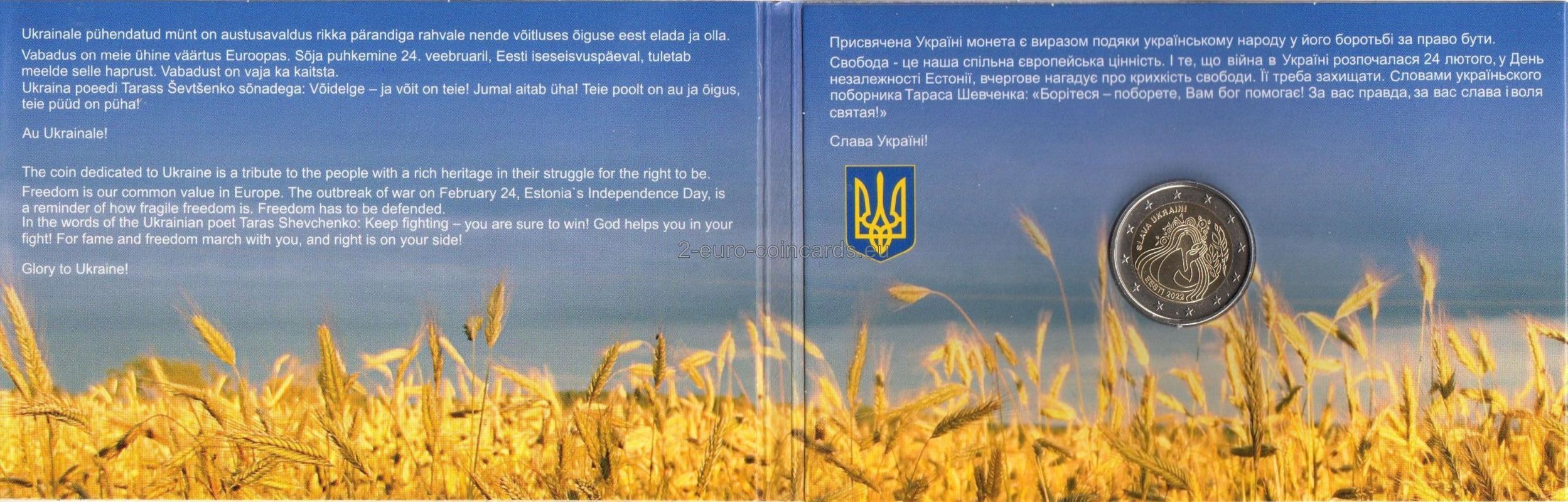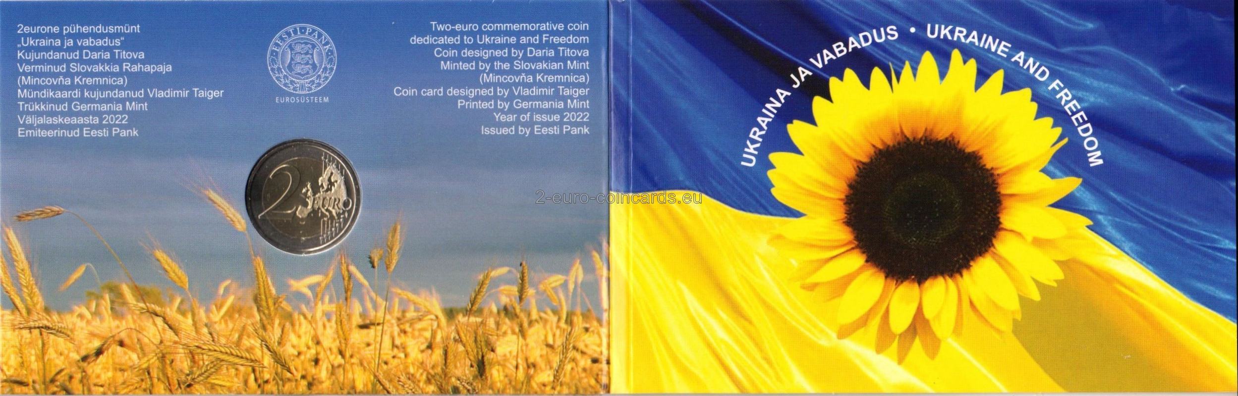 V máji 2022 oznámila estónska centrálna banka neplánovanú emisiu pamätnej mince v hodnote 2 EUR na podporu Ukrajiny. Schválenie a výroba pamätnej mince v hodnote 2 eur trvá spravidla približne 1,5 roka. Ale s touto mincou išlo všetko oveľa rýchlejšie. Prípravy na vydanie mince začala estónska banka už v apríli 2022. Dôležitú úlohu pri navrhovaní mincí zohrala Estónska akadémia umenia, kde mohli na jar pokračovať v štúdiu ukrajinskí študenti umenia, ktorí kvôli vojne utiekli z Ukrajiny. V apríli akadémia zorganizovala súťaž v navrhu mincí medzi ukrajinskými študentmi, v ktorej zvíťazila Darya Titova z Charkova. Dozorná rada estónskej centrálnej banky schválila návrh mince začiatkom mája. Kartu mince navrhol Vladimír Taiger, ktorý bol zároveň konzultantom pri návrhu mince. Potom musela návrh mince schváliť Európska komisia a členské štáty EÚ. Estónska centrálna banka zároveň uskutočnila prípravy na emisiu mincí. Mince boli vyrazené v slovenskej mincovni v Kremnici a mincové karty boli vytlačené v Poľsku.