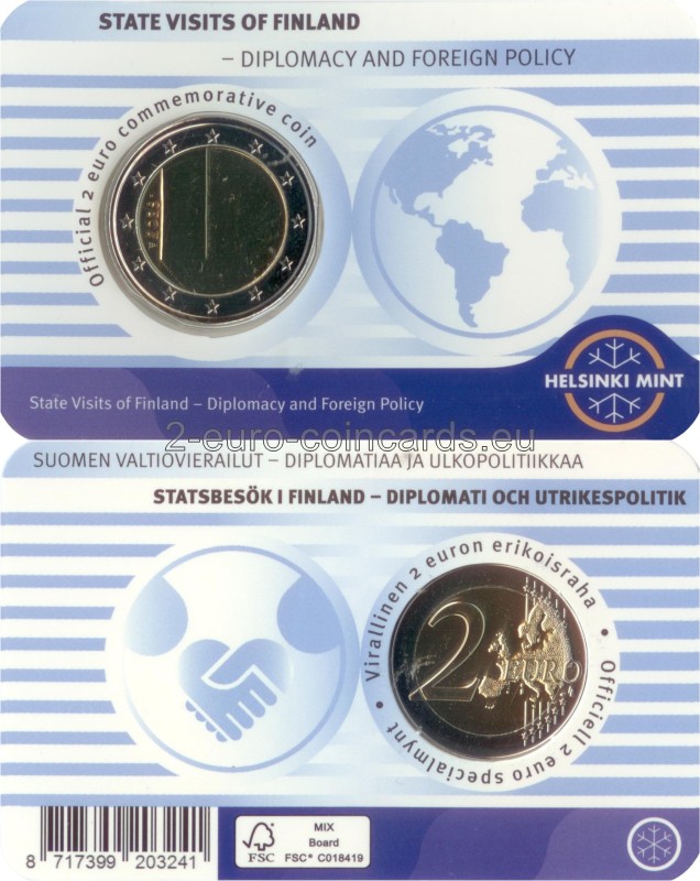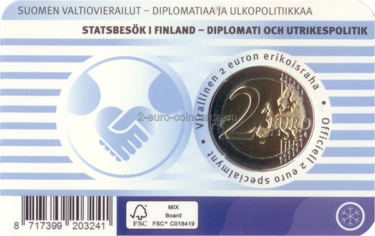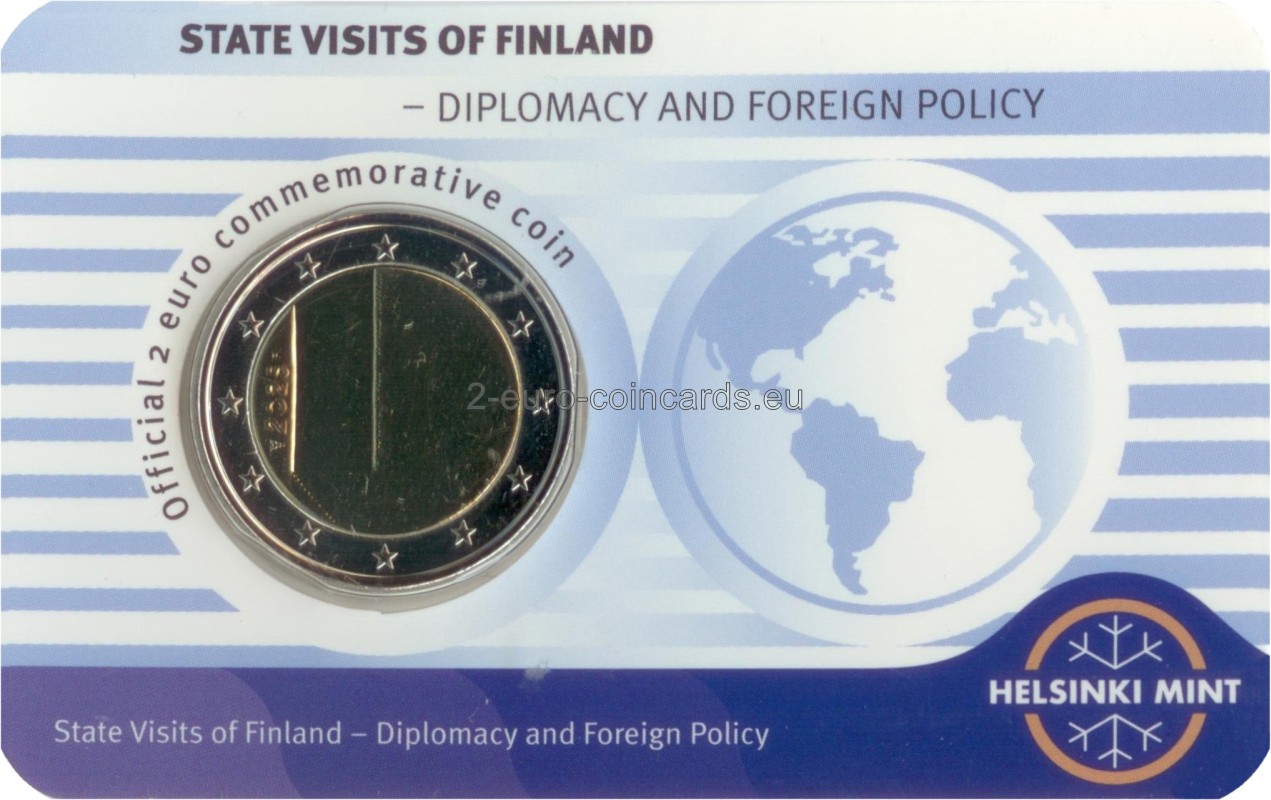 Motív mince navrhli Sinikka Inkeroinen-Huhta a Ilkka Huhta a predstavuje dvere ktoré sú symbolom štátnych návštev a diplomatických vzťahov medzi národmi. Za dverami prebiehajú rokovania, vytvárajú sa vzťahy a buduje sa budúcnosť. Na averze je zobrazená lesklá verzia dverí s hrubým okolím. Ďalej je na nej uvedený rok vydania, 2025.