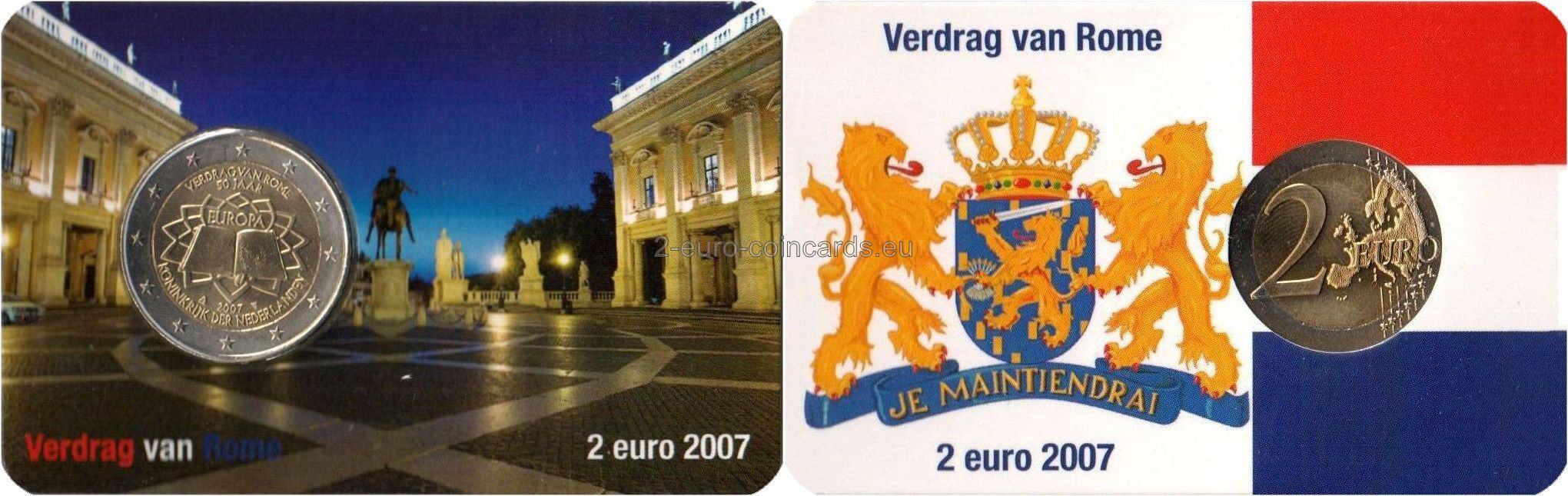 Stred mince zobrazuje Zmluvu podpísanú šiestimi zakladajúcimi členskými štátmi na pozadí evokujúcom dlažbu námestia Piazza del Campidoglio v Ríme, navrhnutú Michelangelom, kde bola 25. marca 1957 Zmluva podpísaná. Nad knihou (v rámci vzoru) je text „EUROPA“, v hornej časti je v dvoch riadkoch nápis: "VERDRAG VAN ROME 50 JAAR" (Rímska zmluva 50 rokov), a v spodnej časti v dvoch riadkoch je rok vydania "2007" a názov vydávajúceho štátu "KONINKRIJK DER NEDERLANDEN". Naľavo od textu 2007 je značka rytca Maartena Brouwera (plachetnica) a napravo značka mincovne v Utrechte (Merkúrová palica).