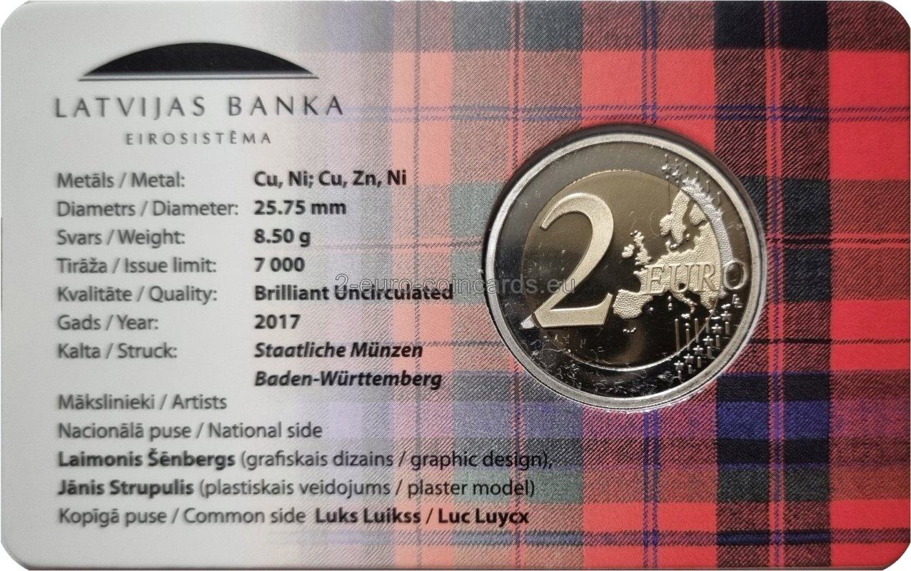 Motív zobrazuje erb oblasti Kurzeme. V hornej časti mince sa nachádza názov vydávajúcej krajiny „LATVIJA“ a v jej dolnej časti je umiestnený nápis „KURZEME“. Na pravej strane je uvedený rok vydania „2017“.
